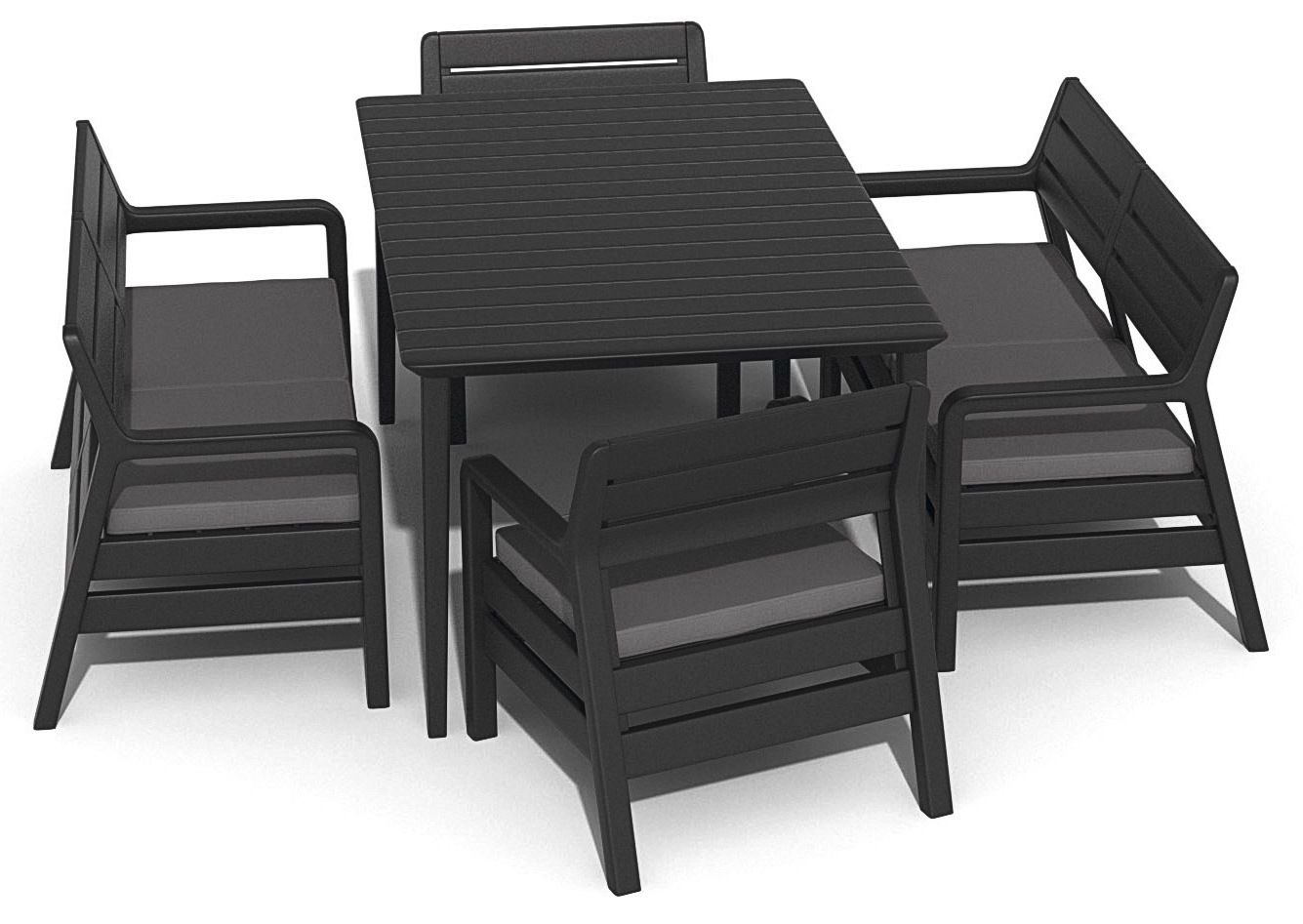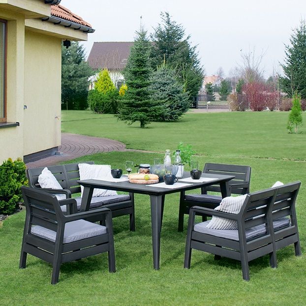 Обеденная группа keter delano lima графит, садовая мебель. Делано nbsp - набор мебели с фактурой, напоминающей деревянные панели. В состав гарнитура входят 2 дивана, два кресла с подлокотниками и большой прямоугольный стол определяющий комплект как обеденный. Идеально подходит для использования на домашних балконах, террасах или в саду. Легко собирается и чистится. Стойкий к воздействию погодных условий и УФ-излучения. Преимущества: Эргономичный дизайн. Подушки в комплекте. Простая сборка без инструмента. Изготовлен из прочного пластика. Неметаллическая рама - не ржавеет и не гниет. Благодаря стойкому к высоким температурам полипропилену, цвета не выгорают и не бледнеют. Кресло, см 65 Х 65 Х 72 Обеденный стол, см 157 Х 98 Х 74 Материал изделия Полипропилен Страна бренда Израиль Вес, кг 46 Цвет Графит Артикул производителя 17205371/сер