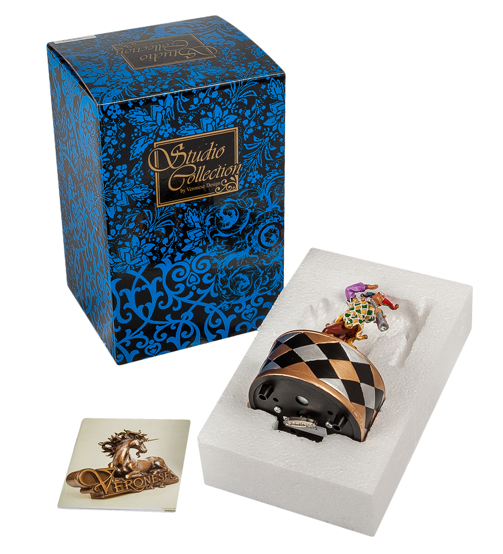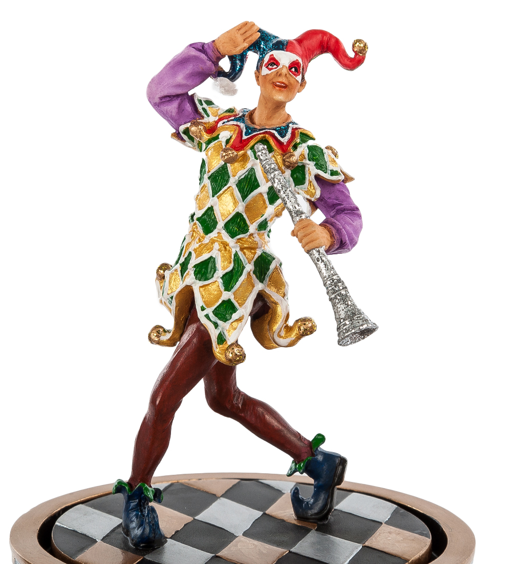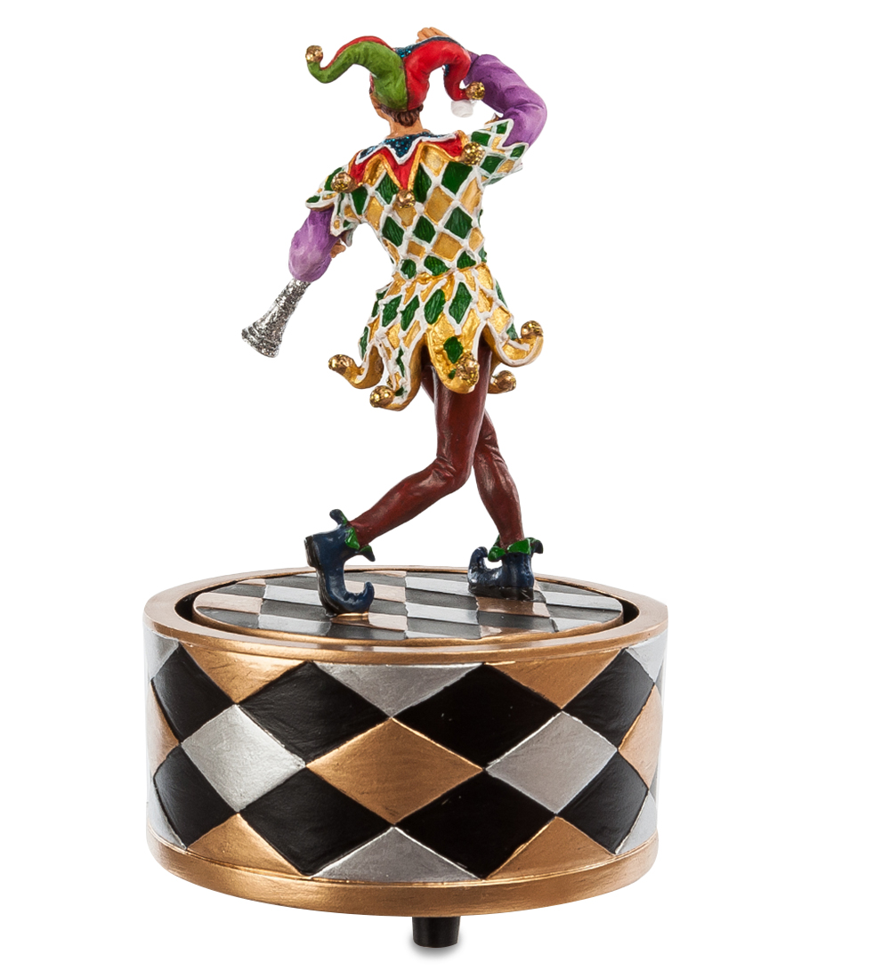 Статуэтка шут муз.. Параметры товара Материал: Полистоун Страна производства: Китай Страна бренда: Гонконг Размеры изделия Длина: 8 см; Ширина: 8 см; Высота: 13.5 см; Вес: 0.25 кг. Размеры упаковки Длина: 13 см; Ширина: 12 см; Высота: 20 см; Вес: 0.4 кг. Размеры короба (24 шт.) Длина: 54 см; Ширина: 38 см; Высота: 42 см; Вес: 10.5 кг.