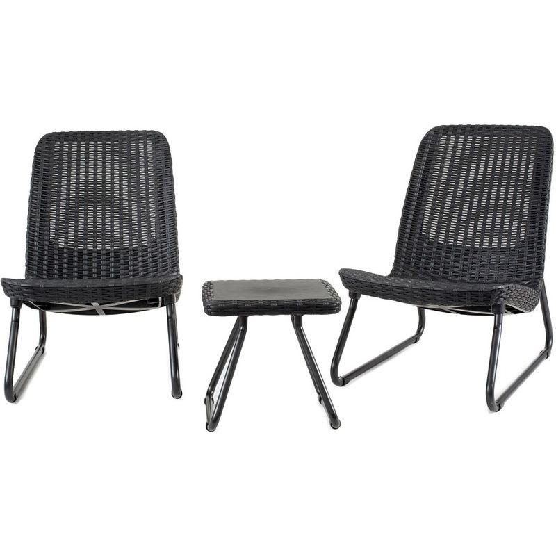 Комплект keter rio patio set графит, садовая мебель. Компактный и стильный комплект Rio Patio отлично подходит на роль мебели для балкона, а так же для оформления зоны отдыха у бассейна. Металлические ножки обеспечивают устойчивость и амортизацию сидящего, маленький столик идеален для стаканов с коктейлем. Словом комплект мебели Rio Patio идеален для отдыха вдвоем Пластиковая мебель Rio Patio собирается за 5 минут, а служит долго. Благодаря стойкому к высоким температурам полипропилену, цвета не выгорают и не бледнеют. Стилизация под искусственный ротанг (пластиковая формовка) Кресло, см 77,5 Х 54 Х 76 Журнальный стол, см 38 Х 38 Х 36 Материал каркаса Углеродистая сталь Материал изделия Полипропилен Страна бренда Израиль Вес, кг 16,5 Цвет серый Артикул производителя 17197637сер