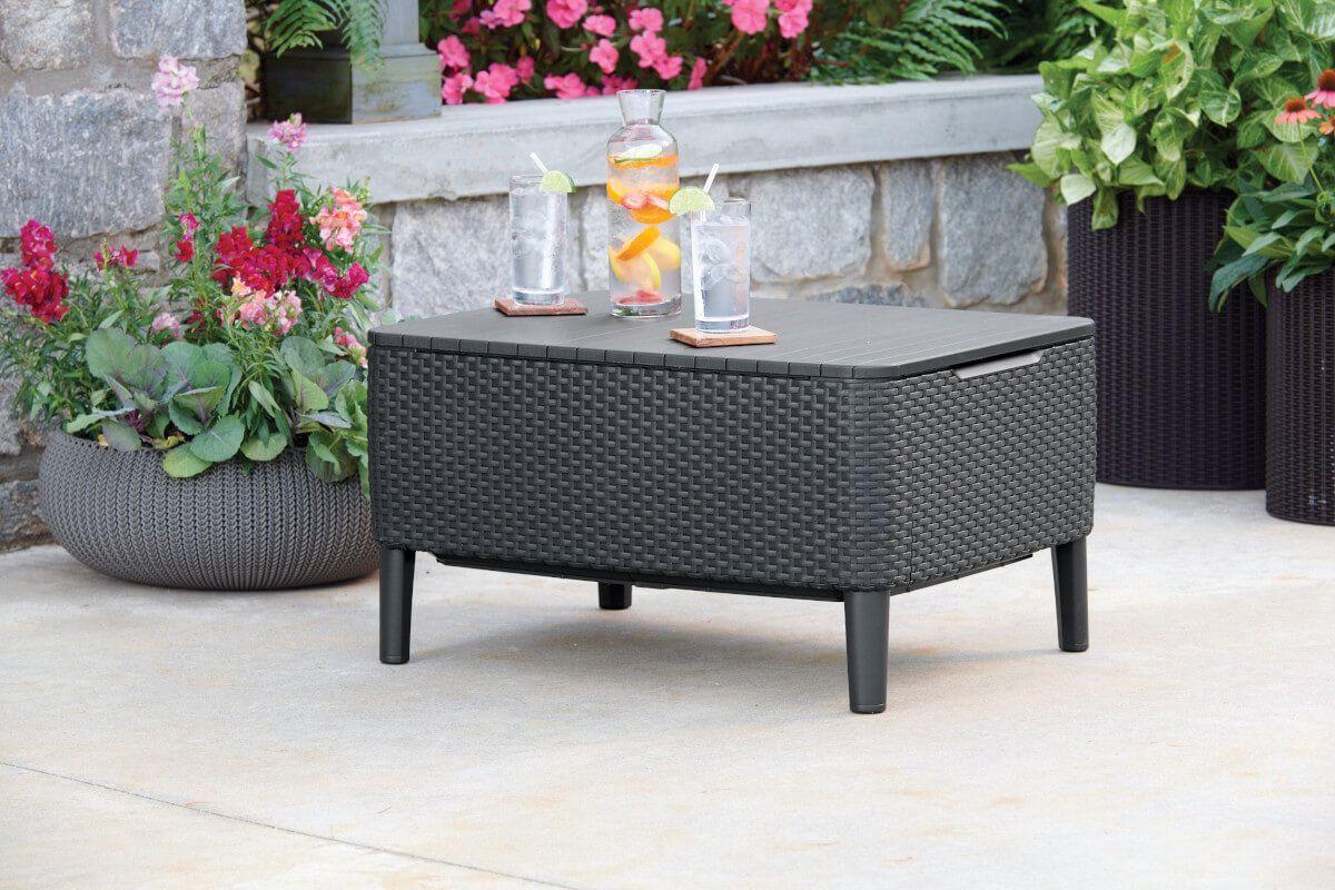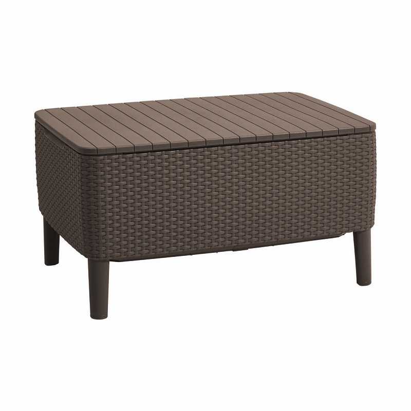Стол-сундук keter salemo коричневый, садовая мебель. Стол-сундук nbsp - решение двух проблем одновременно: достаточно большой кофейный столик является еще и коробом для хранения подушек или любых других предметов. Стол выполнен из пластика, имитирующего искусственный ротанг, поэтому он отлично подойдет к любому комплекту мебели KETER с одинарным плетением, например, комплектам Корфу. Стилизация под искусственный ротанг (пластиковая формовка) Преимущества: Эргономичный дизайн Сделано из прочного пластика Неметаллическая рама - не ржавеет и не гниет Простая сборка без инструмента Благодаря стойкому к высоким температурам полипропилену, цвета не выгорают и не бледнеют Легко мыть и удобно хранить Размер, см 76 X 56 X 42 Материал изделия Полипропилен Страна производства Израиль Вес, кг 7 Цвет коричневый Артикул производителя 17209050 кор