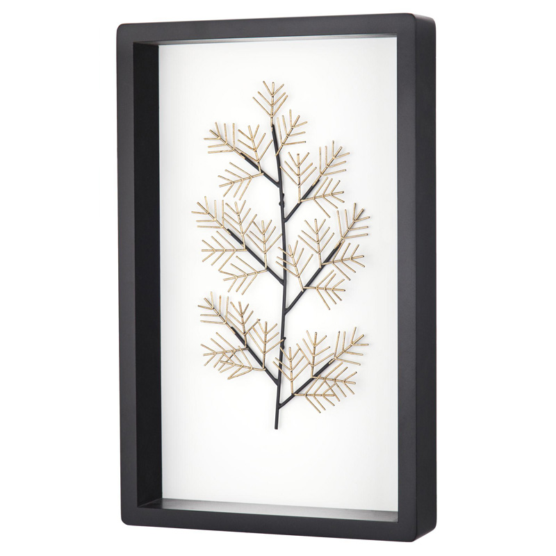 Декоративное настенное панно в матовой деревянной раме черного цвета с белой подложкой.