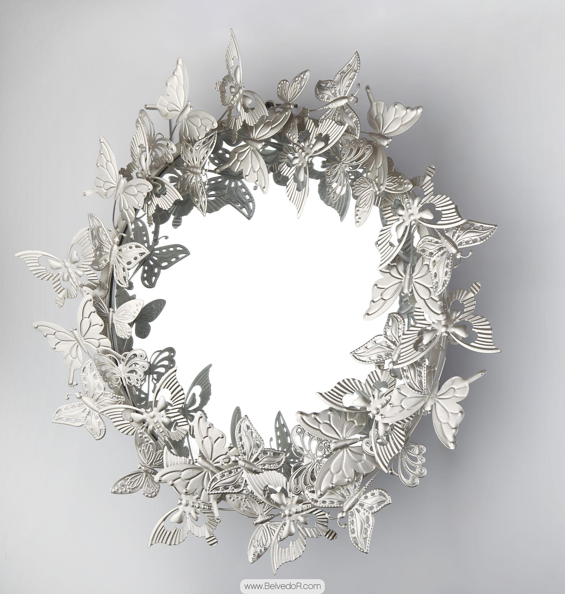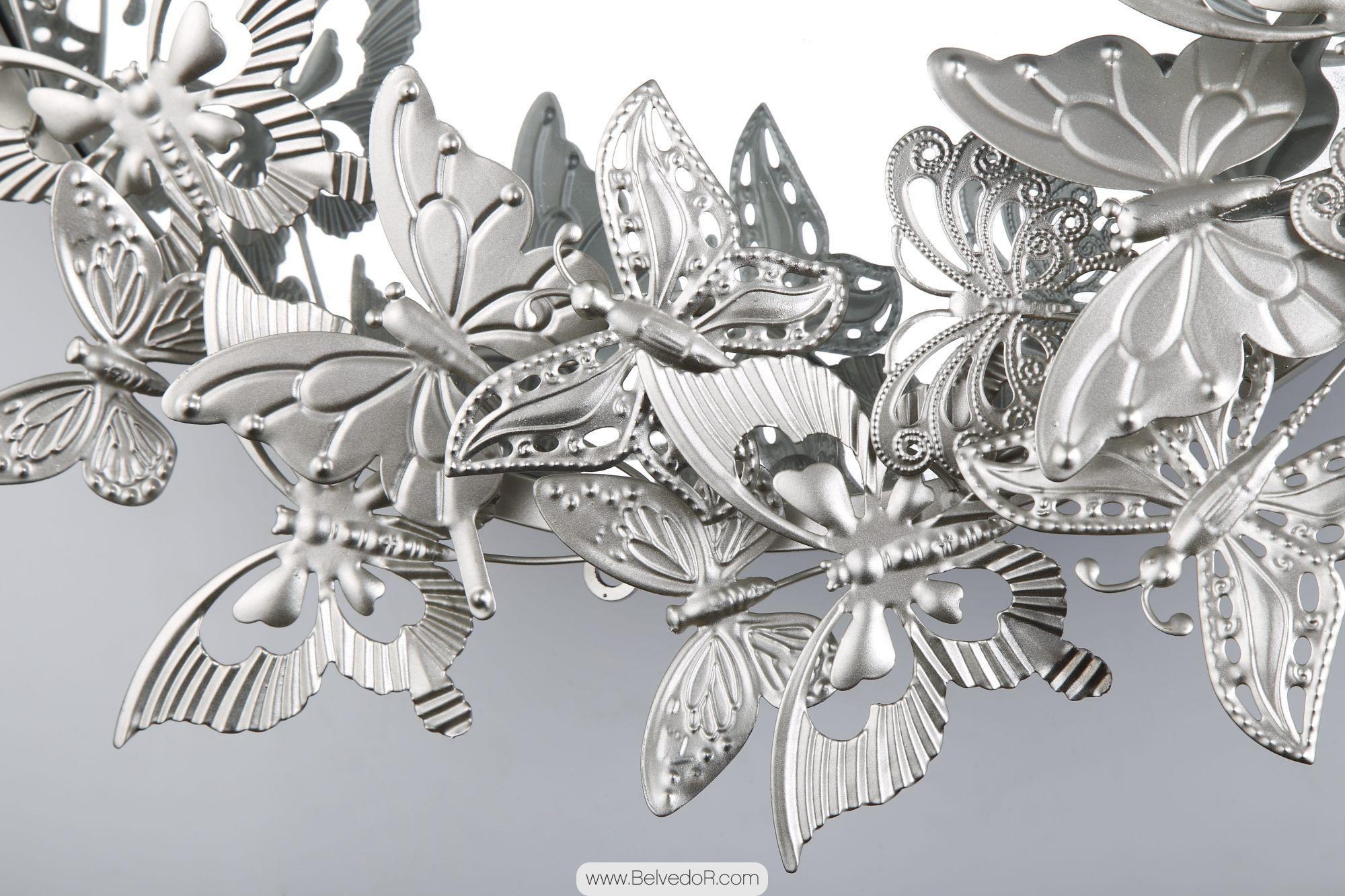 Размеры 74 x 74 x 7 см Артикул 91029 Циферблат под стеклом - Мелодия - Бой - Декоративное настенное панно с зеркалом, изготовлено из металла с матовым серебристым покрытием. Обрамление представлено в виде множества бабочек, расположенных на разных уровнях. Бренд Tomas Stern  развернуть описание ▼