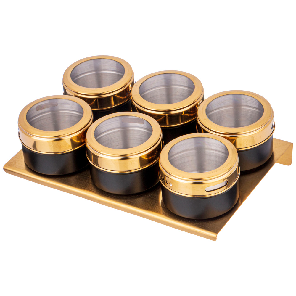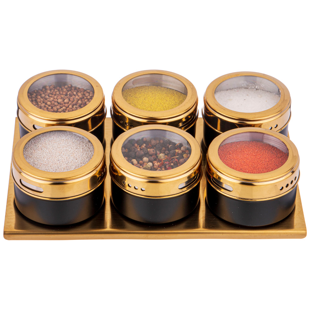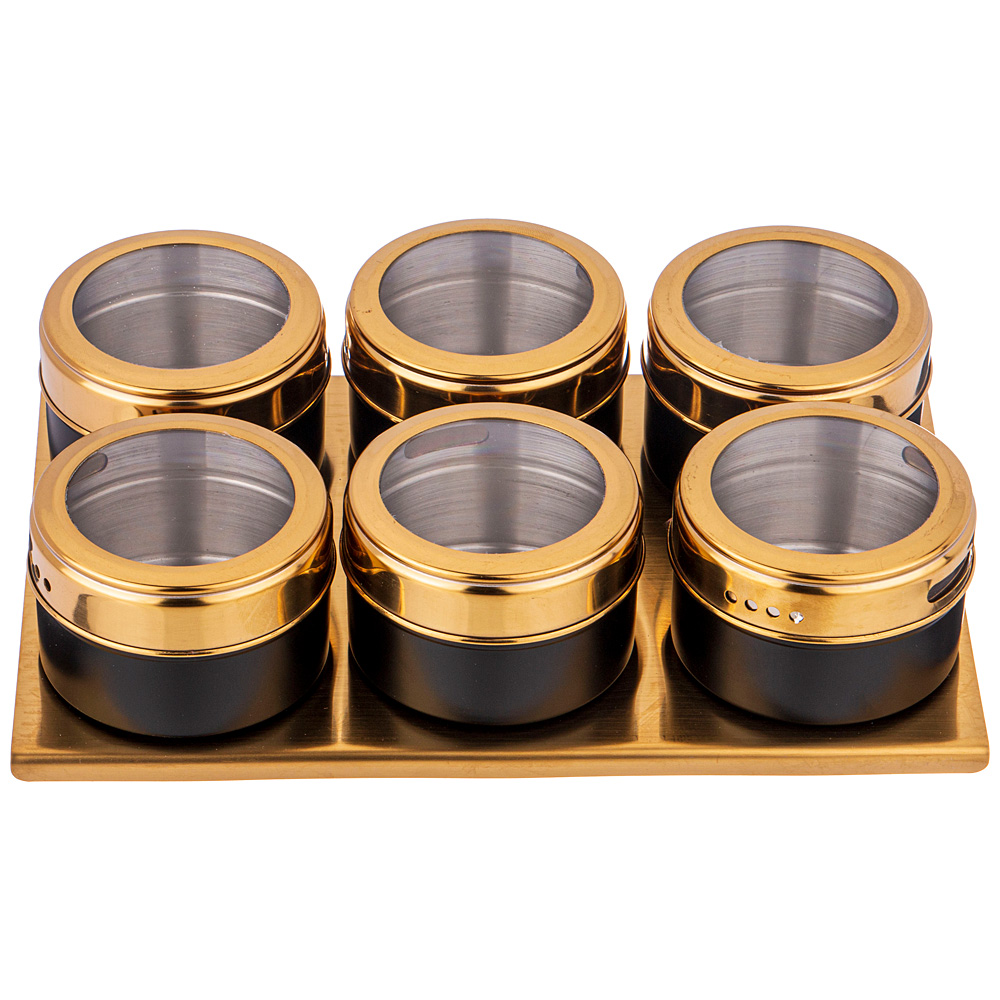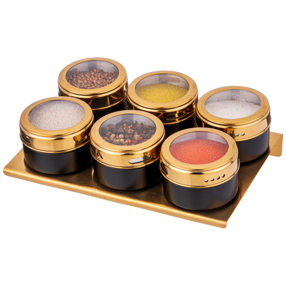 Набор для специй Agness 7 пр. черное золото на магнитах+метал. подставка 2