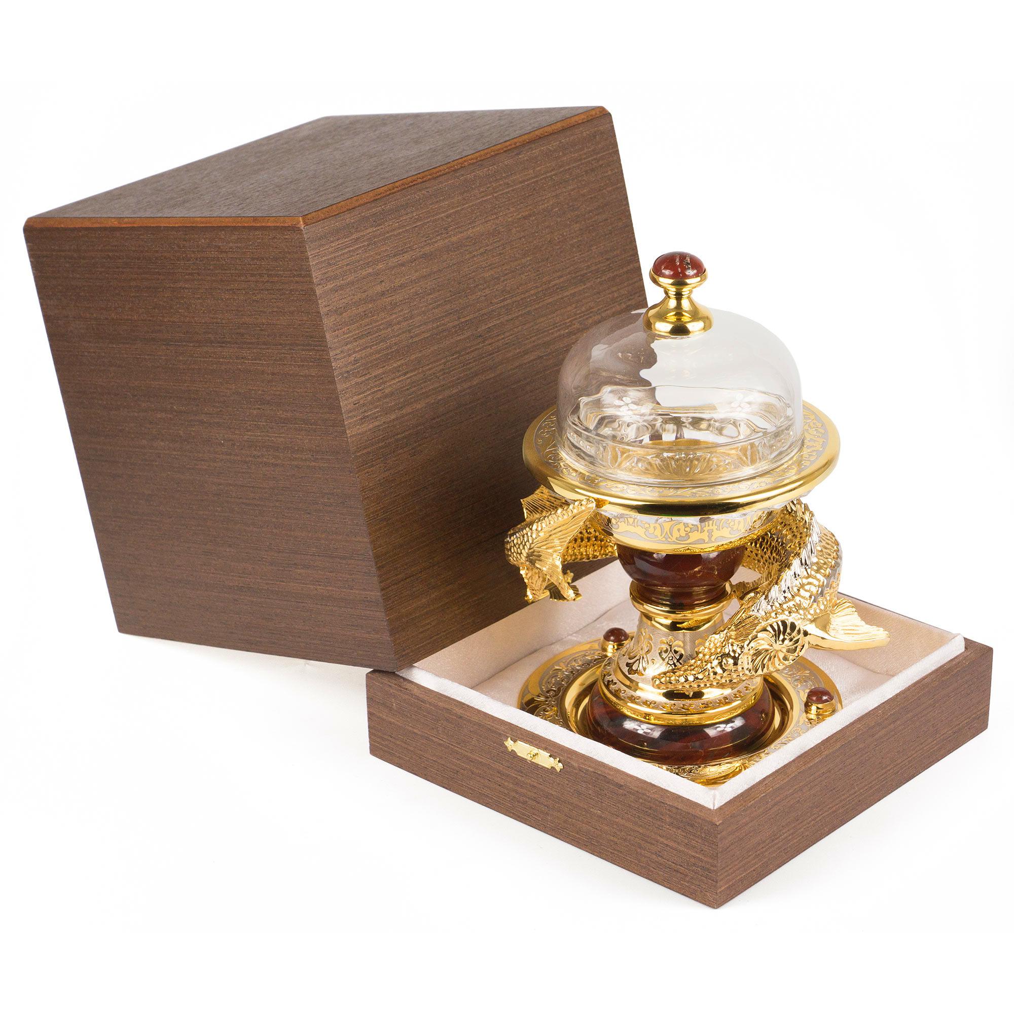 Материал: яшма, хрусталь, латунь, никель, покрытие золотом (999,9).