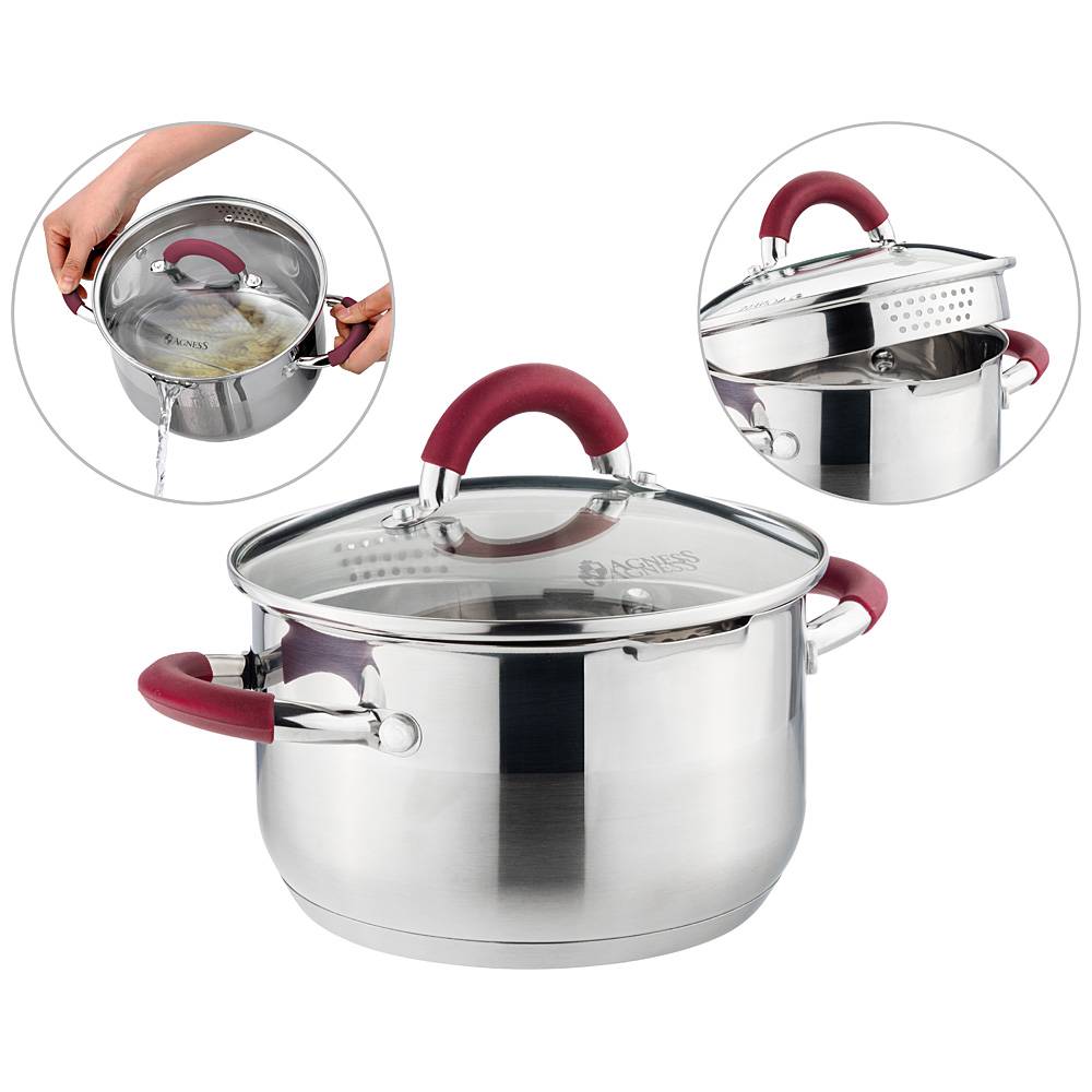 Кастрюля Agness Profi Home со стеклянной крышкой, 2,0л 18x10.5 см