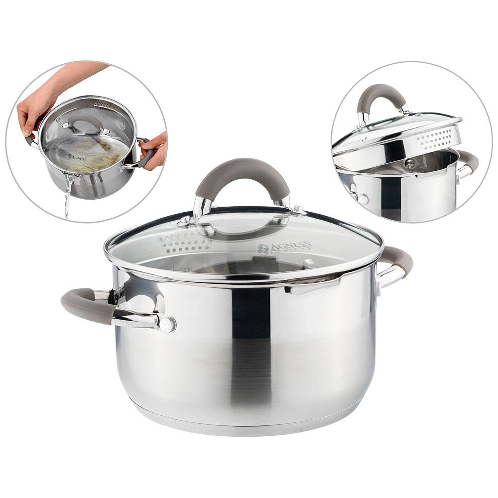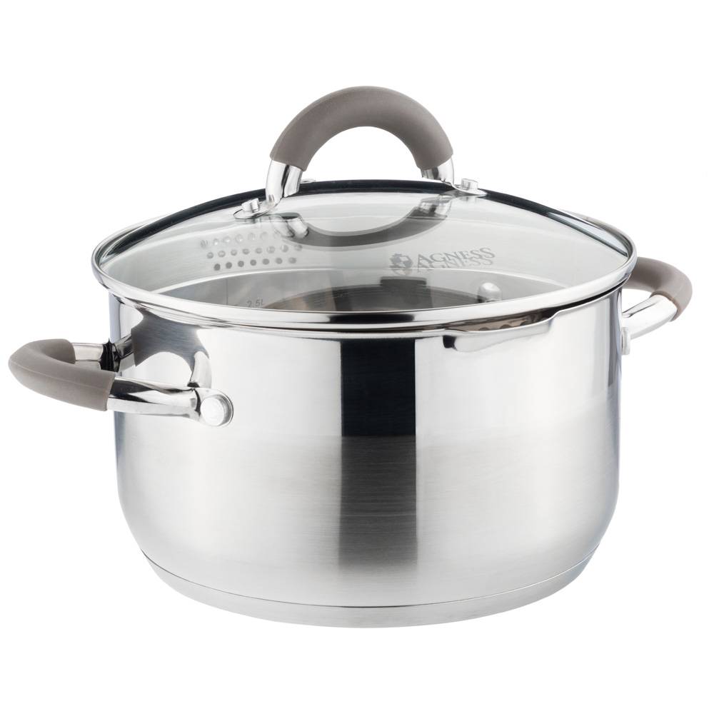 Кастрюля Agness Profi Home со стеклянной крышкой, 3,0л 20x11.5 см