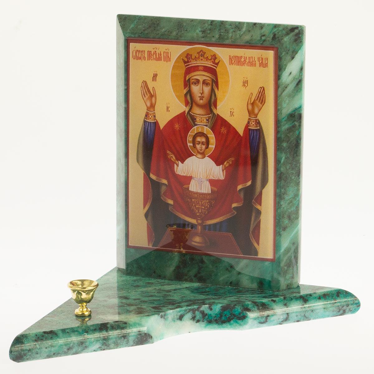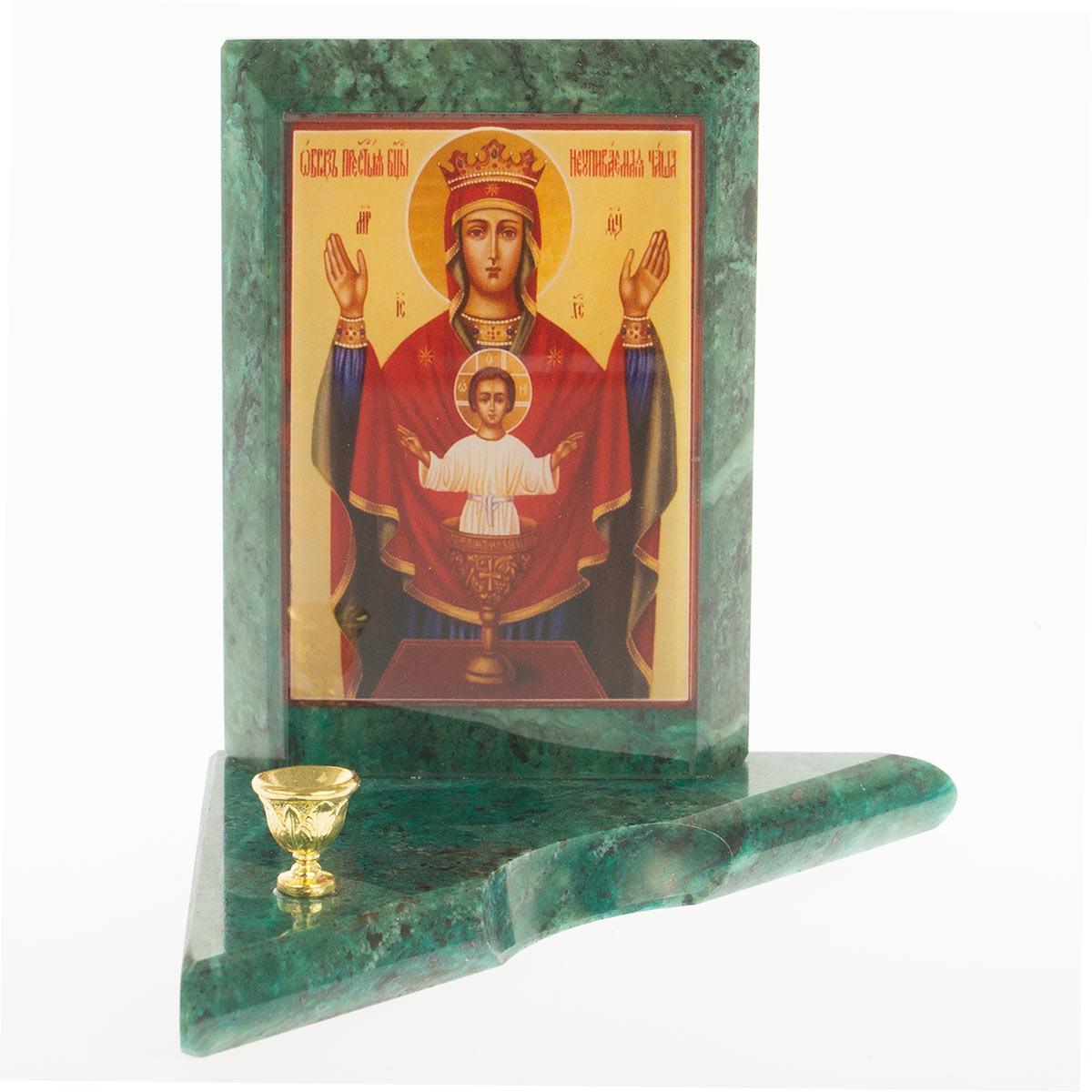 Икона с подсвечником неупиваемая чаша малая змеевик 95х95х100 мм 350 гр.