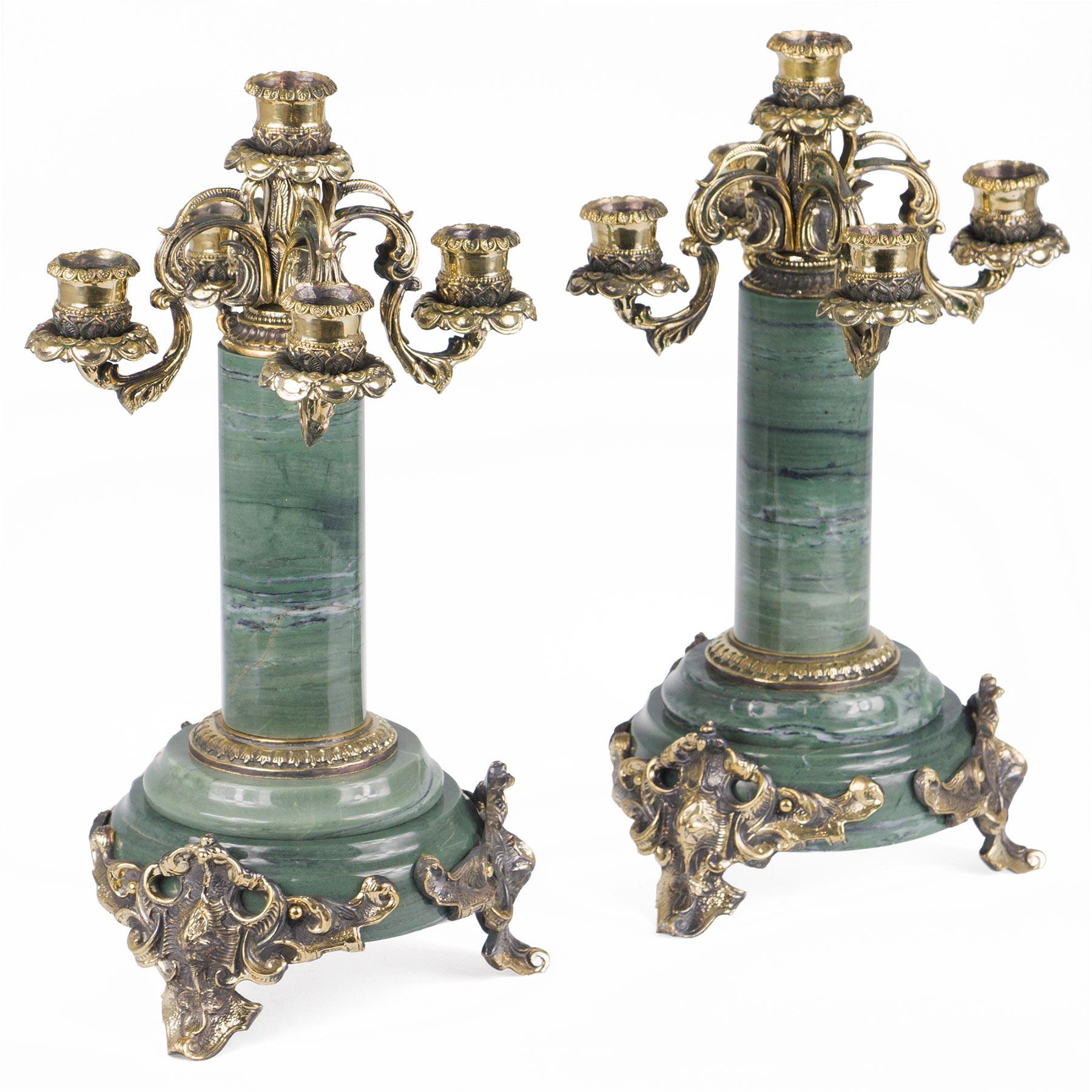 Канделябр 5-ти рожковый пара бронза офиокальцит 160х160х320 мм 7500 гр.