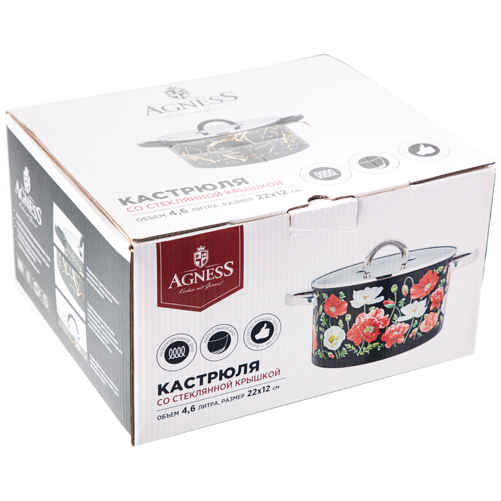 Кастрюля со стеклянной крышкой, нерж.сталь, 4,6 л 22х12 см