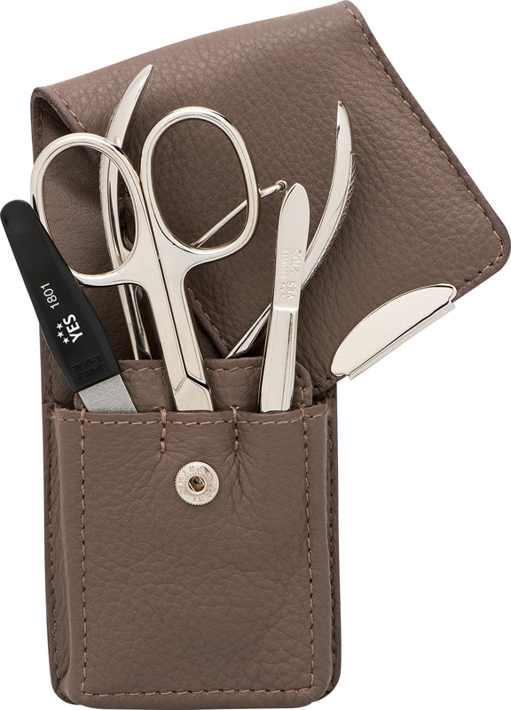 Маникюрный набор Yes, 4 пр. футляр: натуральная кожа, цвет серый