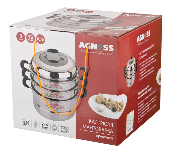 Кастрюля-мантоварка Agness 3 уровня диаметр=28 см 8,7 л индукционное дно