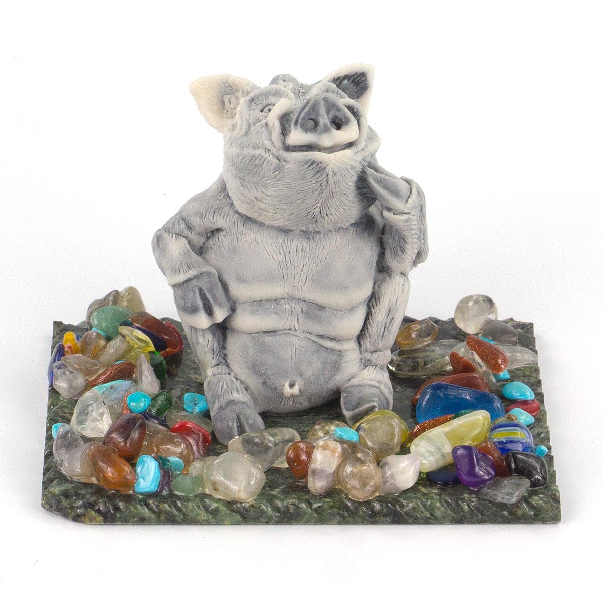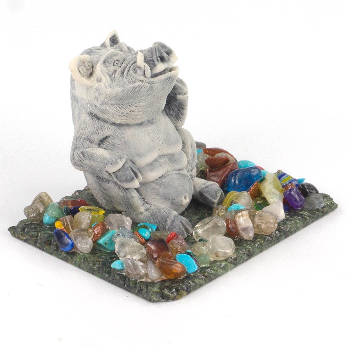 Сувенир "кабан сидит" змеевик мрамолит самоцветы 85х65х55 мм 160
