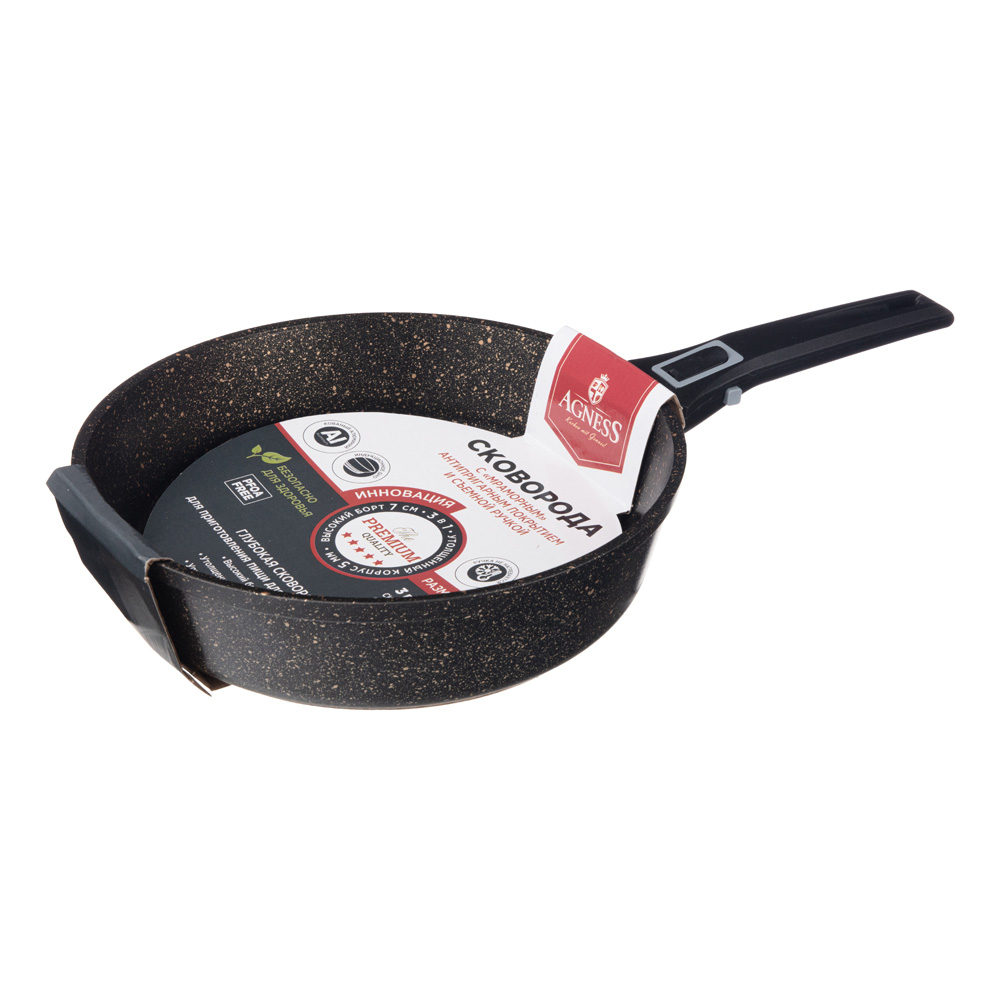 Сковорода Agness премиум черное золото 26x7 Cм, корп 5 мм, съемн ручка, ин