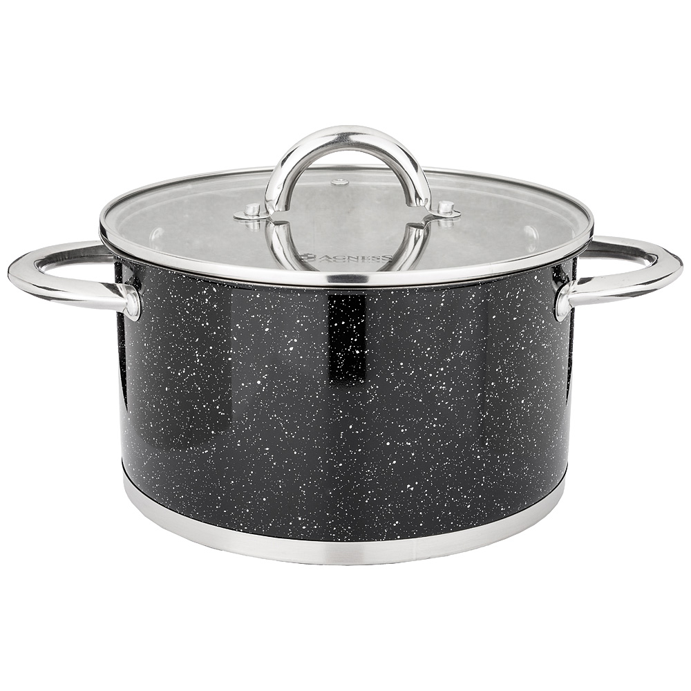 Кастрюля Agness со стеклянной крышкой, нерж.сталь, 6,0л 24х13,5см