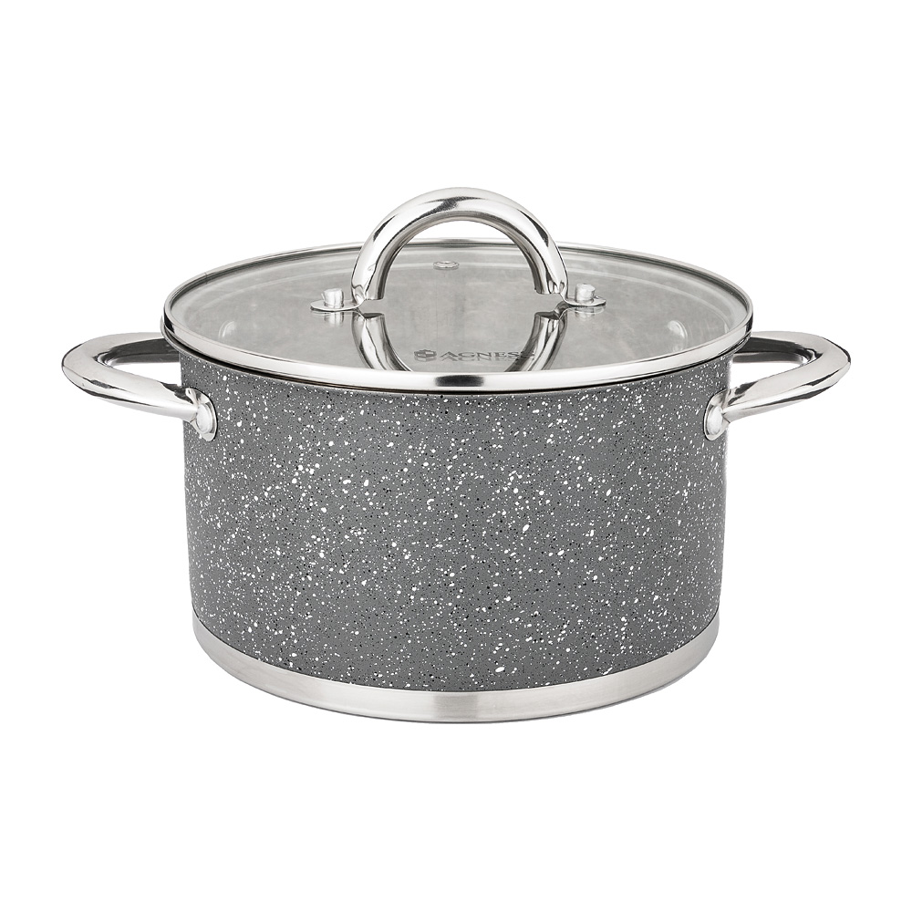 Кастрюля Agness со стеклянной крышкой, нерж.сталь, 3,5л 20х11,5см