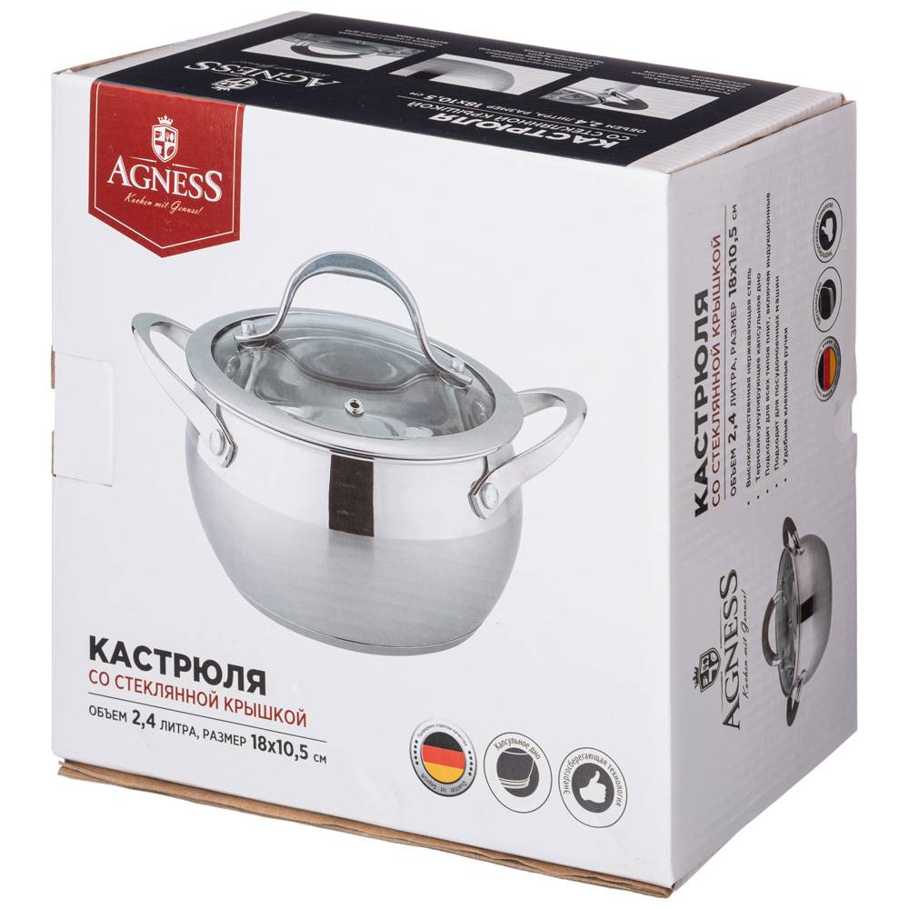 Кастрюля Agness со стекл. крышкой 18x10.5 см
