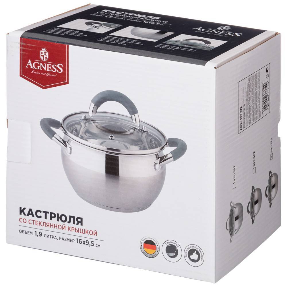 Кастрюля Agness со стекл. крышкой 16x9.5 см