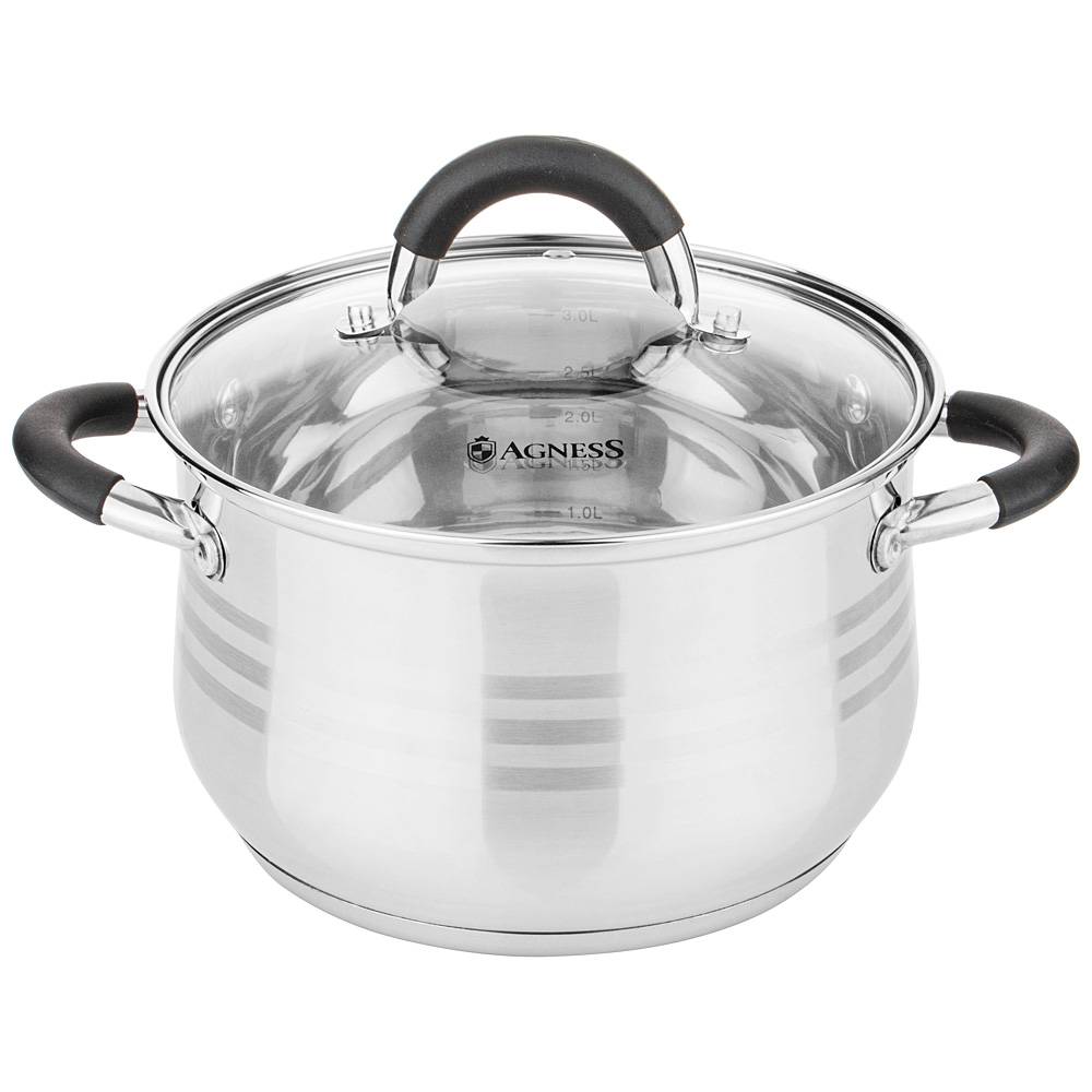 Кастрюля Agness со стекл. крышкой 2,6 л. 18*11,5 см
