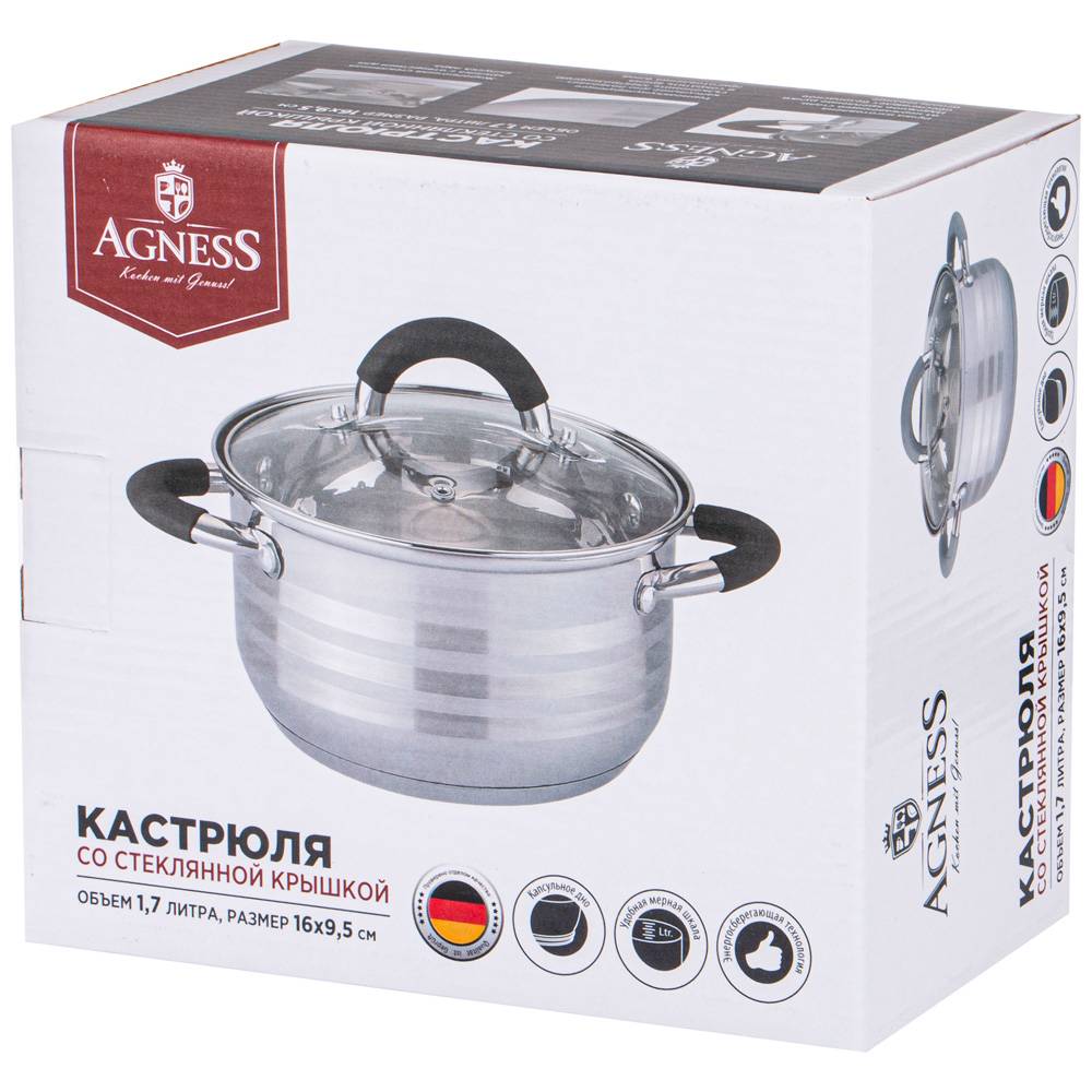 Кастрюля Agness со стекл. крышкой 1,7 л. 16*9,5 см