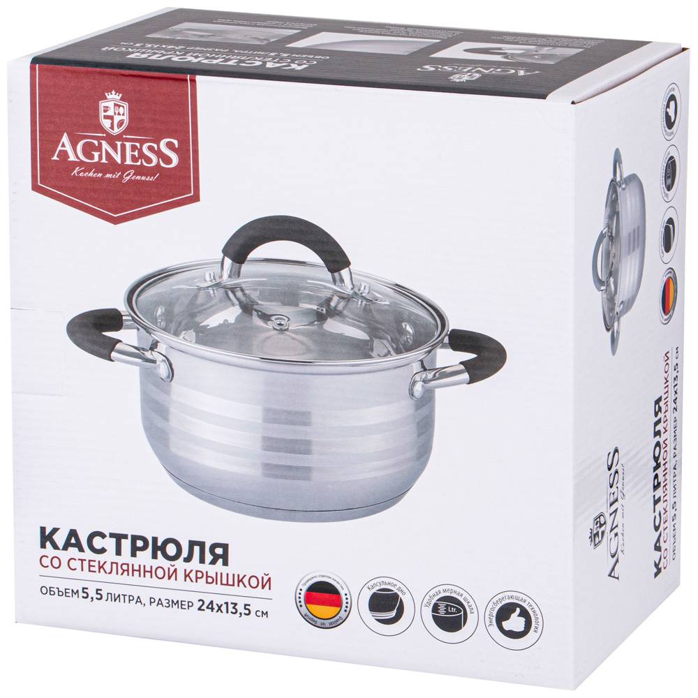 Кастрюля Agness со стекл. крышкой 5,5 л. 24*13,5 см