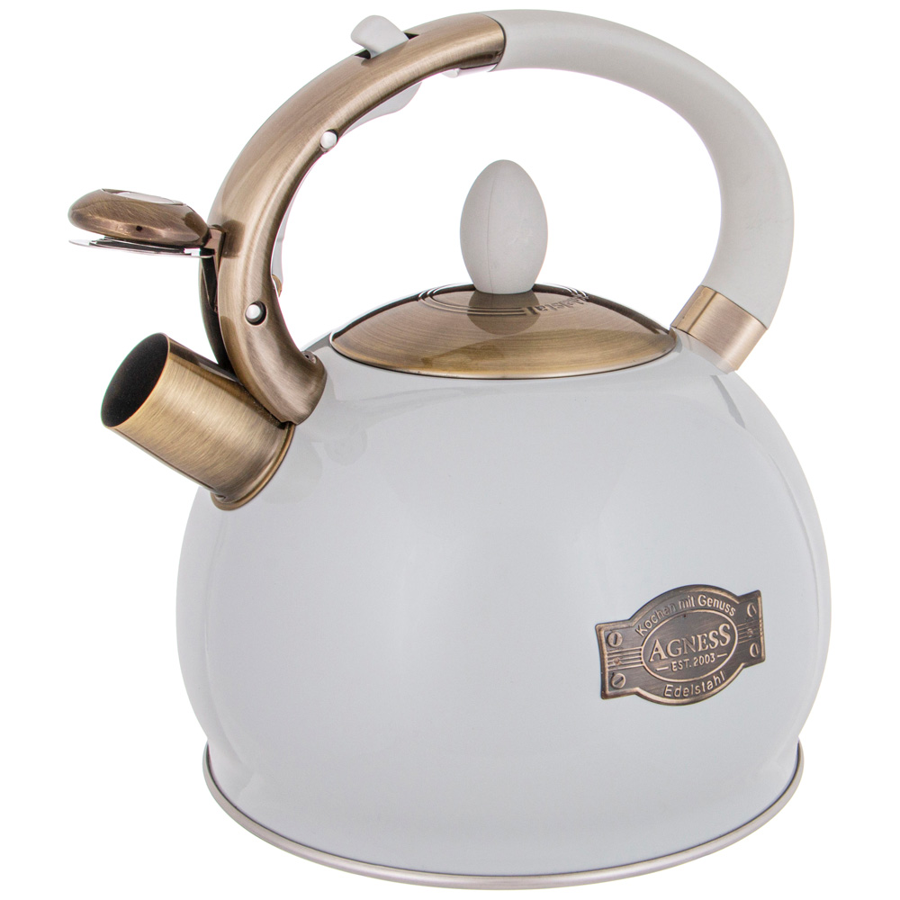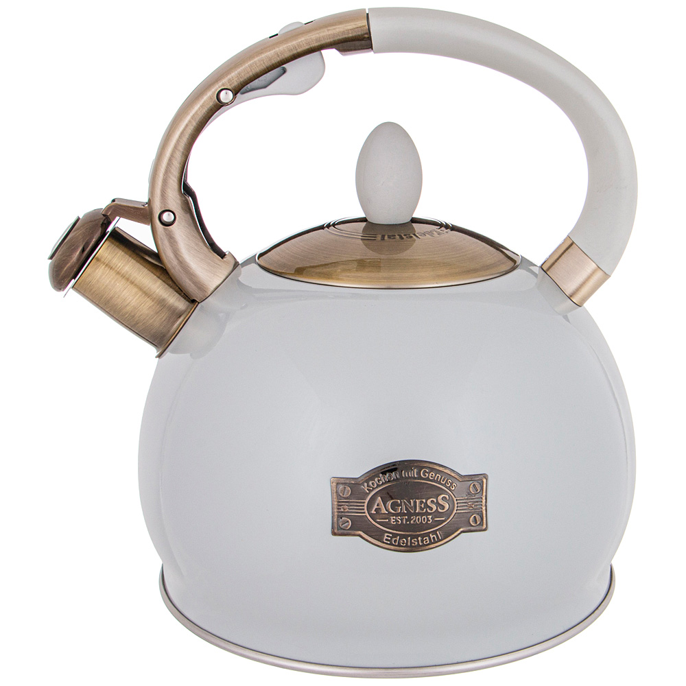 Чайник agness со свистком 3,0 л термоаккумулирующее дно, индукция. ЧАЙНИК AGNESS СО СВИСТКОМ, СЕРИЯ ТЮДОР,3,0 Л ТЕРМОАККУМУЛИРУЮЩЕЕ ДНО, ИНДУКЦИЯ Чайник AGNESS - это надежность, функциональность и стильный дизайн. Чайник выполнен из нержавеющей стали - наиболее прочного и гигиеничного материала. Преимущества: • Капсульное термоаккумулирующее дно с прослойкой из алюминия позволяет воде в чайнике дольше оставаться горячей. Термоаккумулирующее дно ИМЕЕТ МНОГОСЛОЙНУЮ СТРУКТУРУ, в состав которой входит толстая пластина из алюминия, запрессованная под высоким давлением с металлическим диском, еще одной пластиной из алюминия, и эта конструкция закрывается капсулой из нержавеющей стали. Благодаря высокой теплопроводности алюминия термоаккумулирующее дно имеет свойства накапливать (аккумулировать) тепло и быстро и равномерно распределять его по всей поверхности посуды. В чайниках с термоаккумулирующим дном вода закипает быстрее, и дольше остается горячей. • Легко наливать воду. Используя клапан на ручке чайника, вы легко сможете налить воду. Просто нажмите на клапан, чтобы открыть носик чайника. • Встроенный свисток подскажет, что вода в чайнике закипела и его пора снимать с плиты. • Благодаря внешнее жаропрочному покрытию и стильному дизайну чайник AGNESS украсит любую кухню • Подходит для всех типов плит, включая Индукционные Металлический чайник AGNESS - незаменимый атрибут в Вашем доме, а также прекрасный подарок для Ваших близких. • Размеры чайника: общий диаметр дна 18 см, индукционное дно13 см, высота 24 см Внимание! Не нагревайте пустой чайник. Рекомендуется нагревать чайник, наполнив его на 2/3 от общего объема. Следите, чтобы диаметр конфорки совпадал или был меньше диаметра дна чайника. Пламя от газовой конфорки не должно попадать на корпус чайника. Не подходит для использования в микроволновой печи и посудомоечной машине. Рекомендована ручная мойка. Материал: Нержавеющая сталь Микроволновая печь: Нет Объем, л: 3 Посудомоечная машина: Нет Серия: Тюдор Бренд: Agness Страна: КИТАЙ Маркировка: Нет Вес: 1.183 кг Длина коробки: 20 см Ширина коробки: 20 см Высота коробки: 25 см