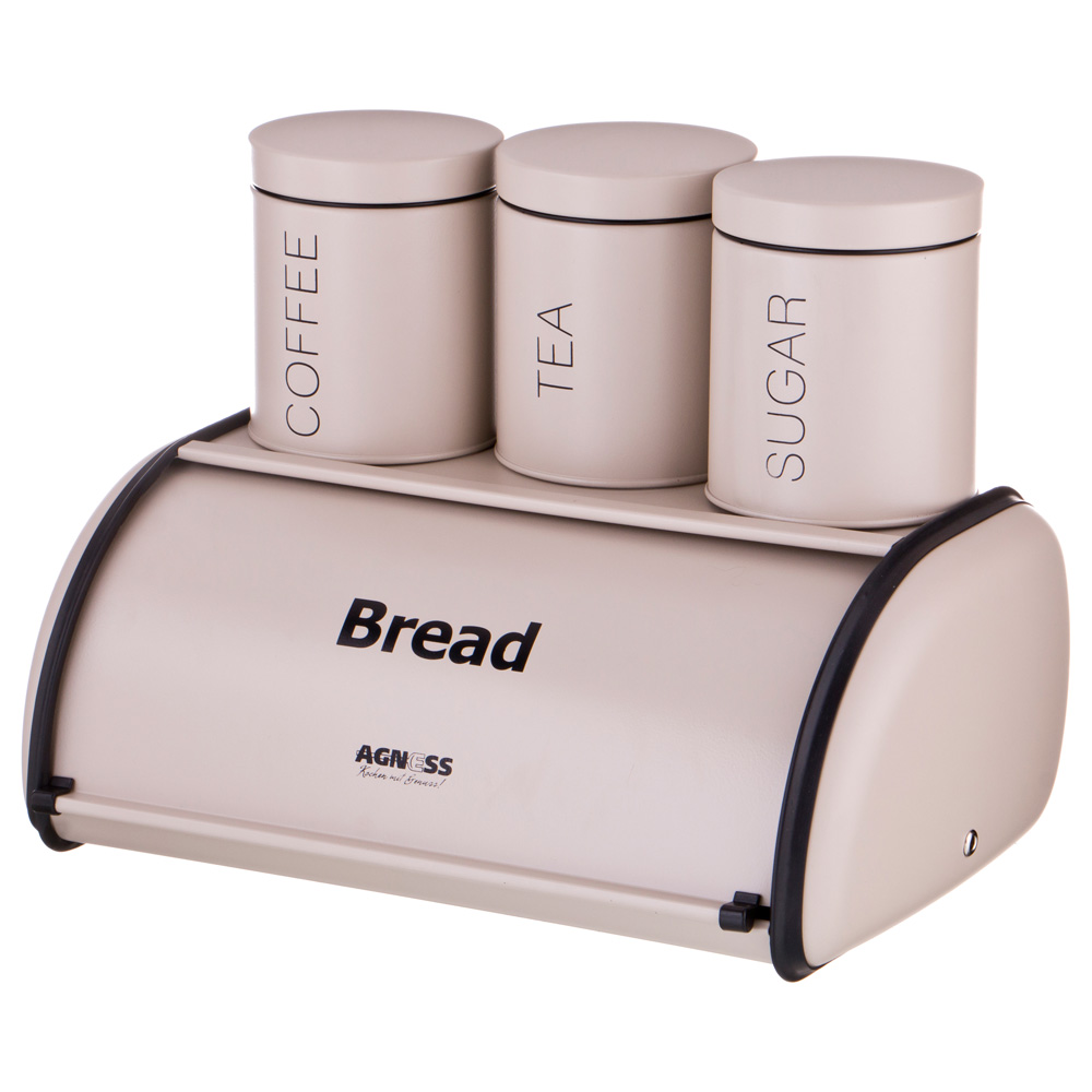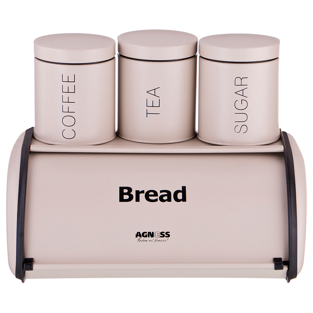 Хлебница agness металлическая, 35,5х23х14,5см с 3-мя банками для сыпуч. пр. ХЛЕБНИЦА AGNESS VELOUR МЕТАЛЛ.35,5Х23Х14,5СМ С 3-МЯ БАНК. Д/СЫП. ПРОД. D10СМ, ВЫС12СМ, 950МЛ Хлебница и банки для сыпучих продуктов являются частью системы хранения в доме. В хлебнице ТМ AGNESS хлебобулочные изделия СОХРАНЯЮТ свежесть, мягкость и аромат надолго. В удобных круглых банках для сыпучих Ваши продукты будут ЗАЩИЩЕНЫ от влаги и посторонних запахов с помощью ГЕРМЕТИЧНО закрывающейся крышки с уплотнительным кольцом. КОМПАКТНЫЙ размер позволяет сэкономить место на кухне, а СТИЛЬНЫЙ изысканный дизайн украшает интерьер кухни. ДИЗАЙН является частью коллекции, что позволит Вам создать ЕДИНЫЙ СТИЛЬ серии VELOUR. Изделия сделаны из металла, они долговечны и неприхотливы в уходе. Механизм крышки надежен и долговечен, не требуется дополнительного места при открытии крышки. ПОРЯДОК и УЮТ на кухне с ТМ AGNESS Высота, см: 14.5 Длина, см: 35.5 Материал: Сталь Окрашенная Серия: Velour Ширина, см: 23 Бренд: Agness Страна: КИТАЙ Маркировка: Нет Вес: 1.750 кг Длина коробки: 36 см Ширина коробки: 24 см Высота коробки: 15 см