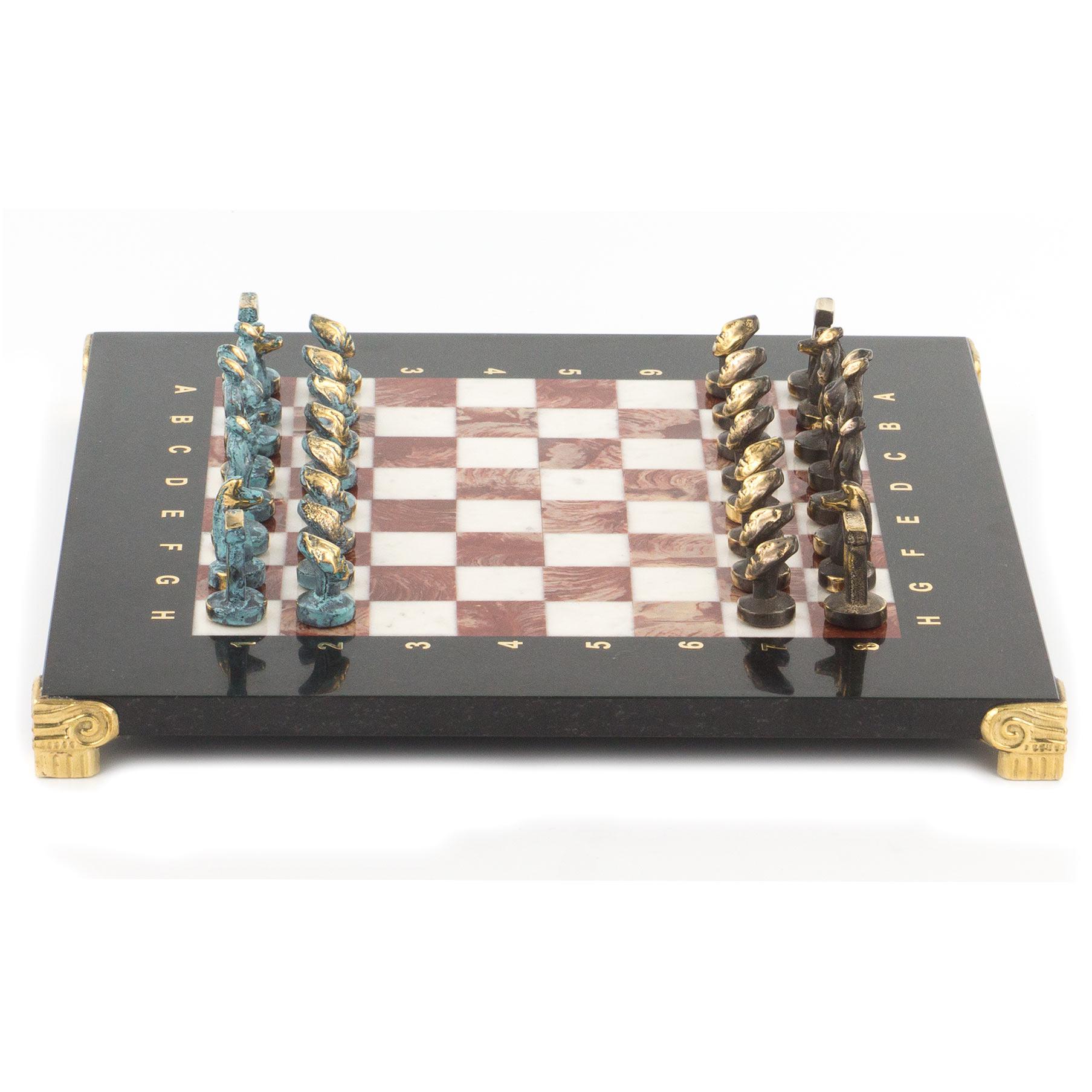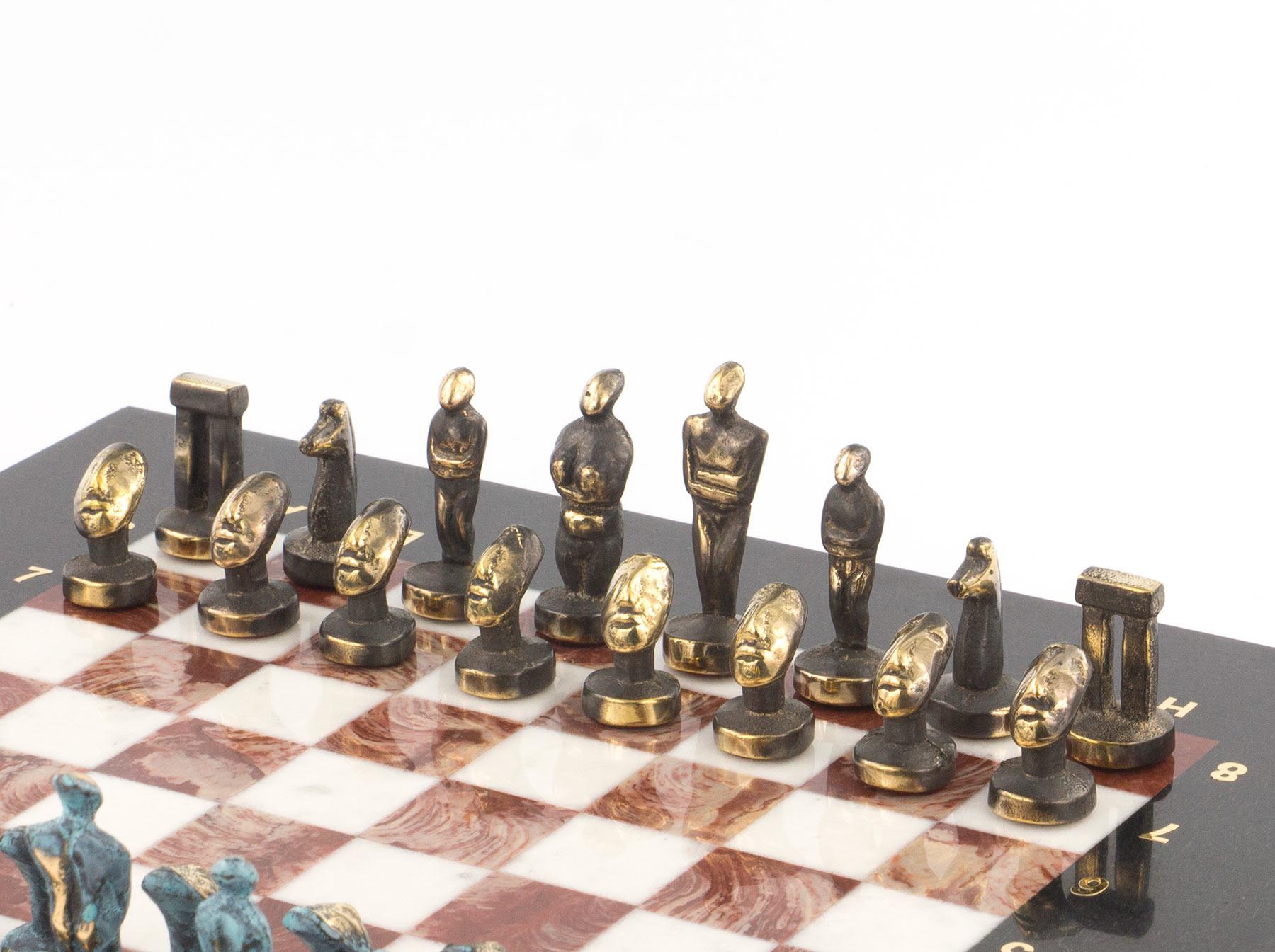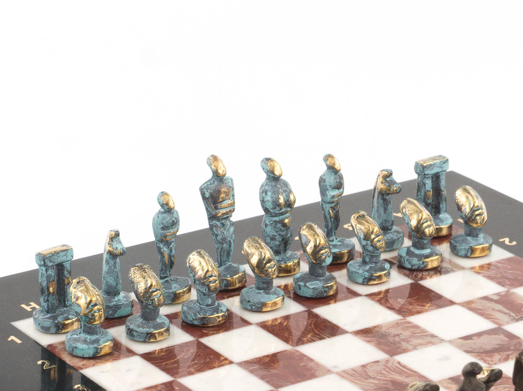 Материал: доска из белого мрамора, лемезита и черного змеевика, фигуры замак