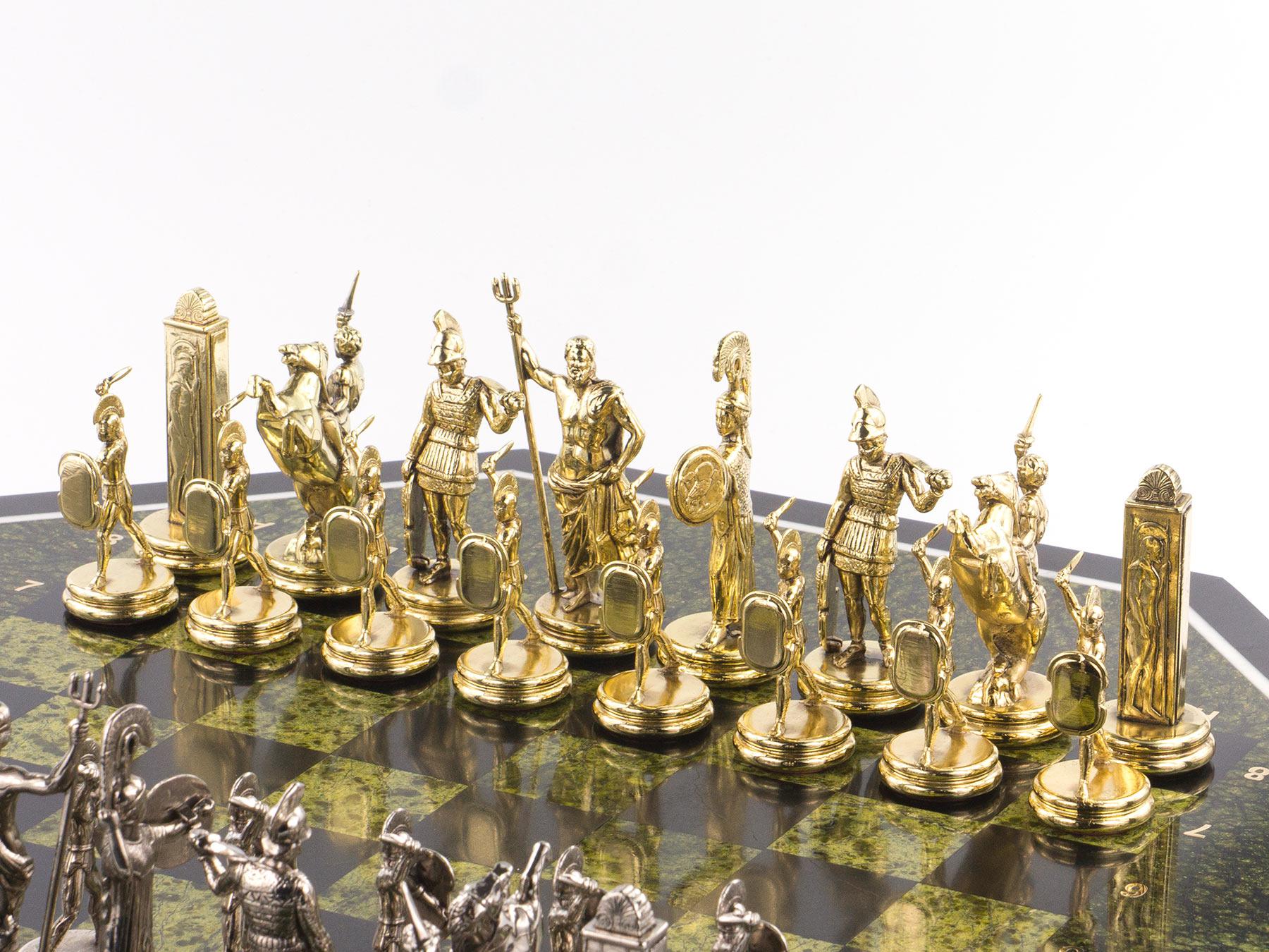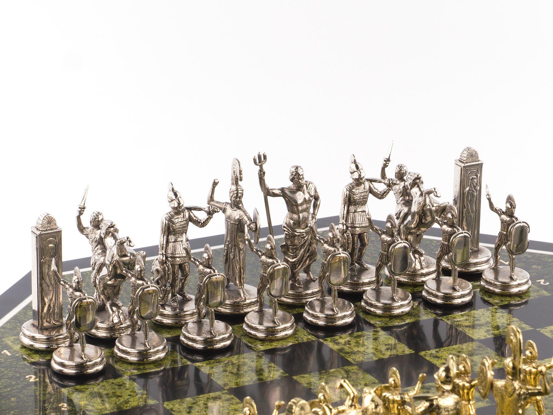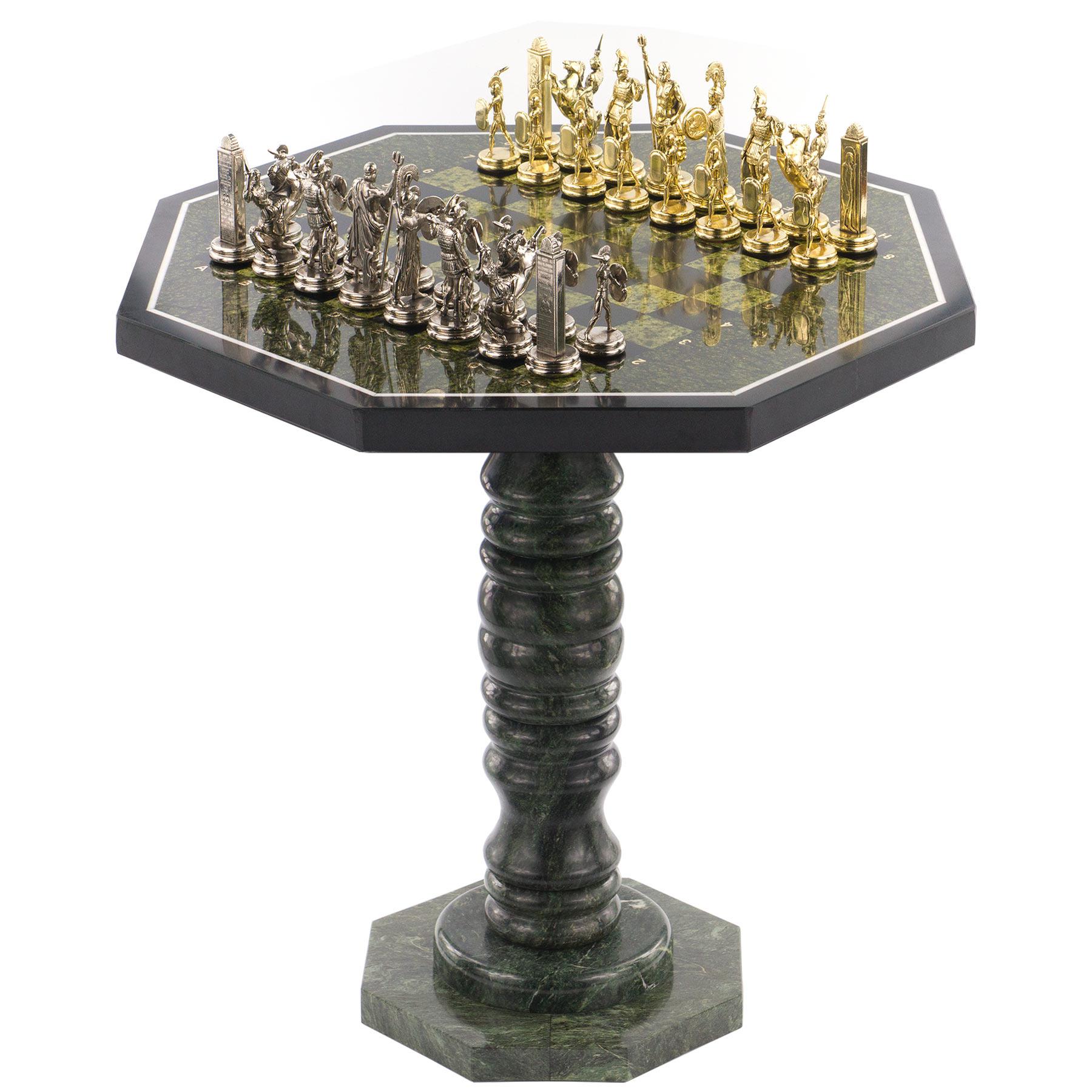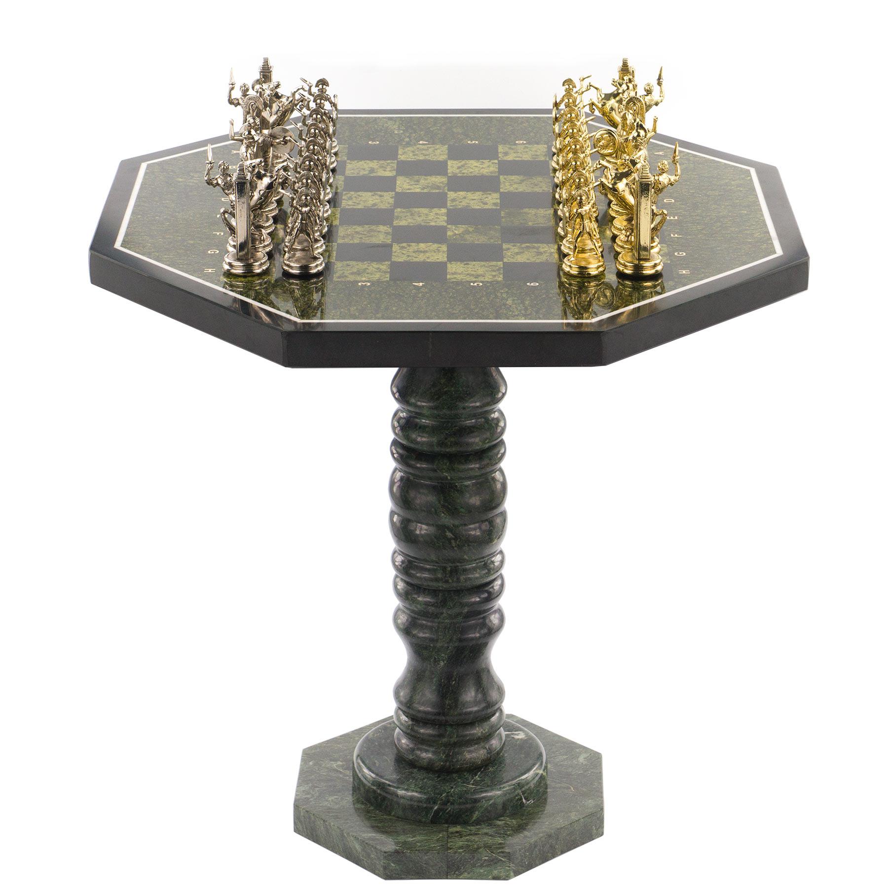 Шахматный стол фигуры "греческая мифология" змеевик металл 600х6. Вес 45000 г Размер стол 60х60х62 см, клетка 4,5х4,5 см, высота фигур: 7,4 см, король 11 см Материал стол из змеевика, фигуры из сплава замак  развернуть описание ▼