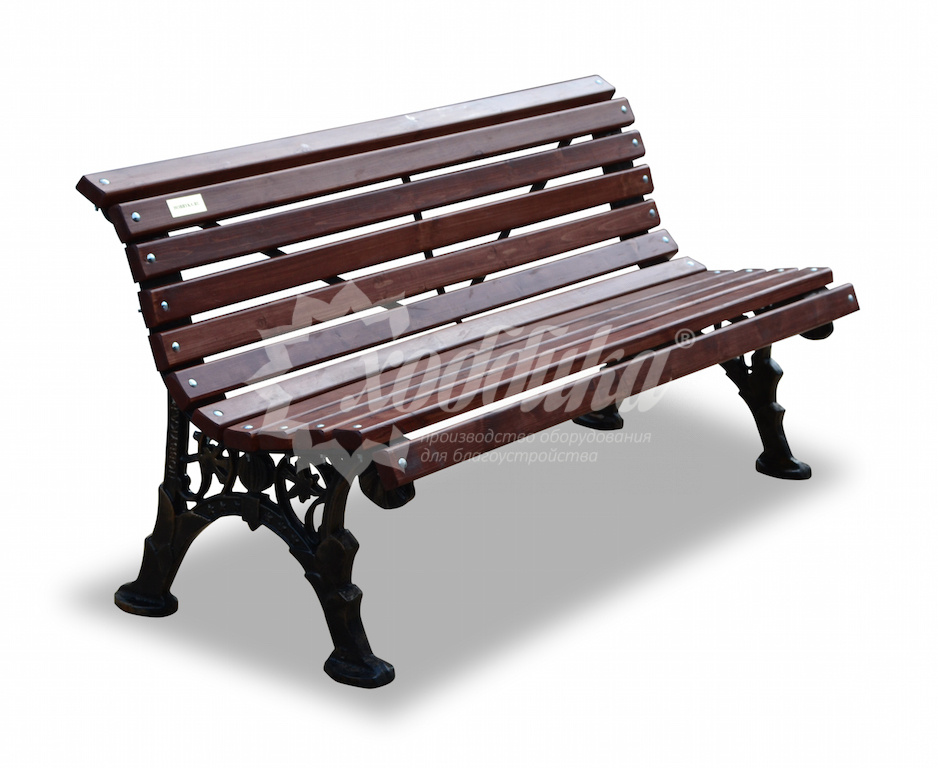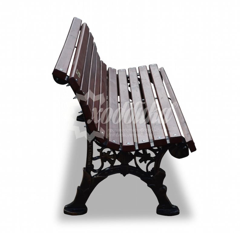 Скамейка чугунная «ажурная без подлокотников» 2,0 м (три опоры). Подробные характеристики Скамейка поставляется в разобранном виде! Материалы: Опоры: Чугунное художественное литьё. Покрыты порошковой полимерной краской. Возможность выбора цвета по каталогу RAL. Стандартный цвет (по умолчанию) - черный + бронзовое патинирование. Сиденье и спинка: Брус - ангарская сосна/лиственница (вариант исполнения: композитные материалы) различного сечения. Огнебиозащитные пропитки + тонировочный состав с антисептиком + два слоя яхтного лака с промежуточным шлифованием. Возможность выбора цвета из палитры. Фурнитура: Оцинкованная. Возможность выбора цвета фурнитуры по каталогу RAL. Стандартный цвет (по умолчанию) - серебристый. Возможность использования потайной/скрытой фурнитуры. Технические характеристики: Высота: 700 мм Ширина: 620 мм Длина: 600 - 3000 мм Высота сиденья: 420 мм Ширина сиденья: 400 мм Длина посадочного места: 600 - 3000 мм Вес версии 0.6 м: 49.21 кг Вес версии 1.2 м: 55.87 кг Вес версии 1.5 м: 58.75 кг Вес версии 1.8 м: 61.63 кг Вес версии 2.0 м (2 опоры): 63.55 кг Вес версии 2.0 м (3 опоры): 84.45 кг Вес версии 2.5 м (3 опоры): 90.35 кг Вес версии 3.0 м (3 опоры): 95.15 кг Варианты цвета на выбор: , махагон, палисандр, тик,