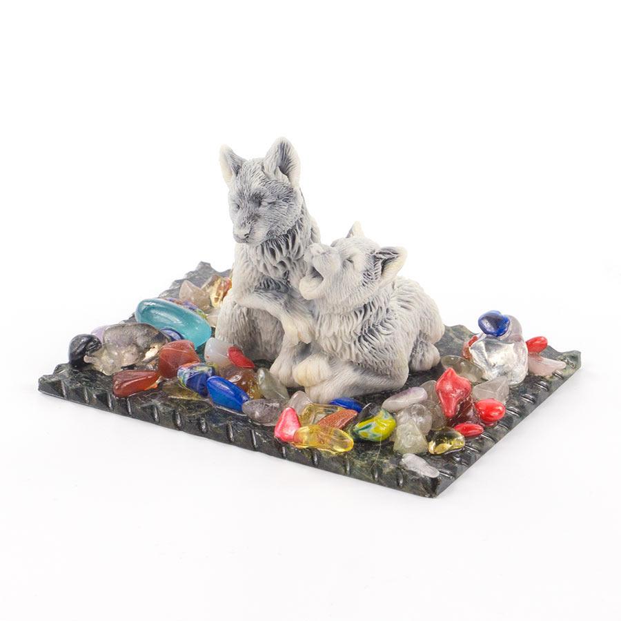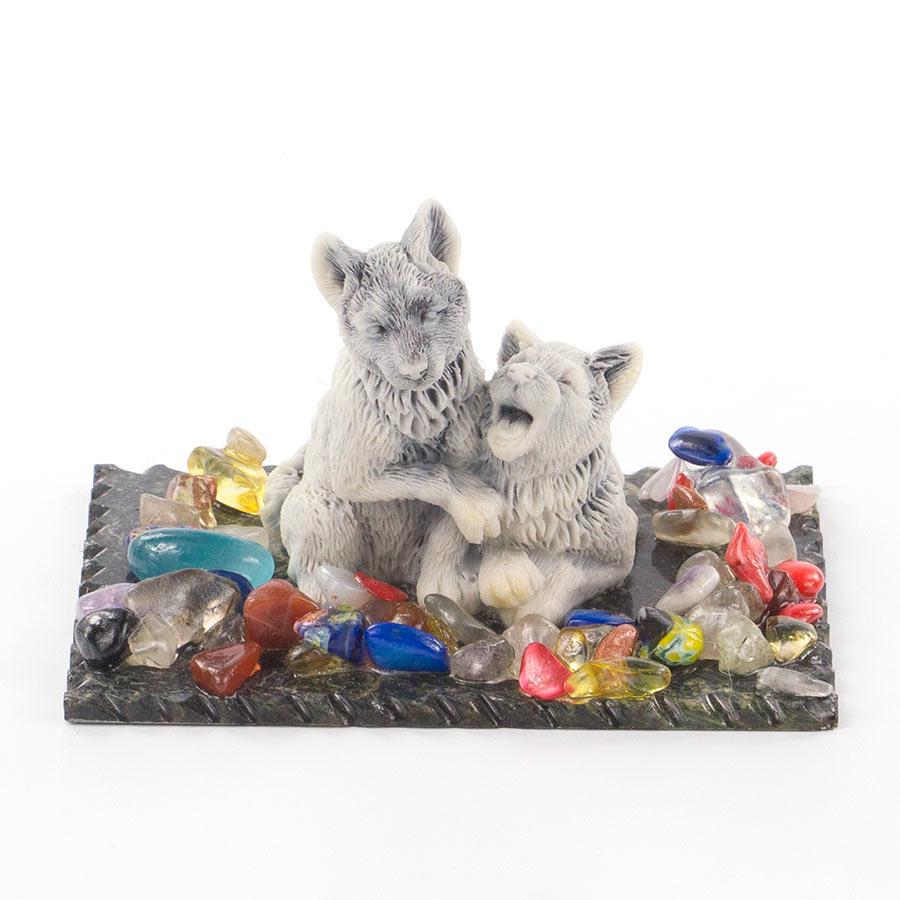 Сувенир "пара волчат" змеевик мрамолит самоцветы 90х65х55 мм 115