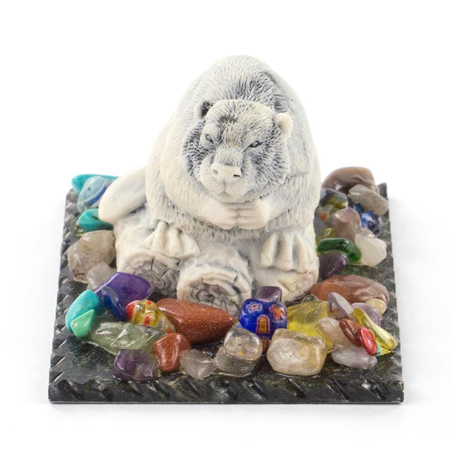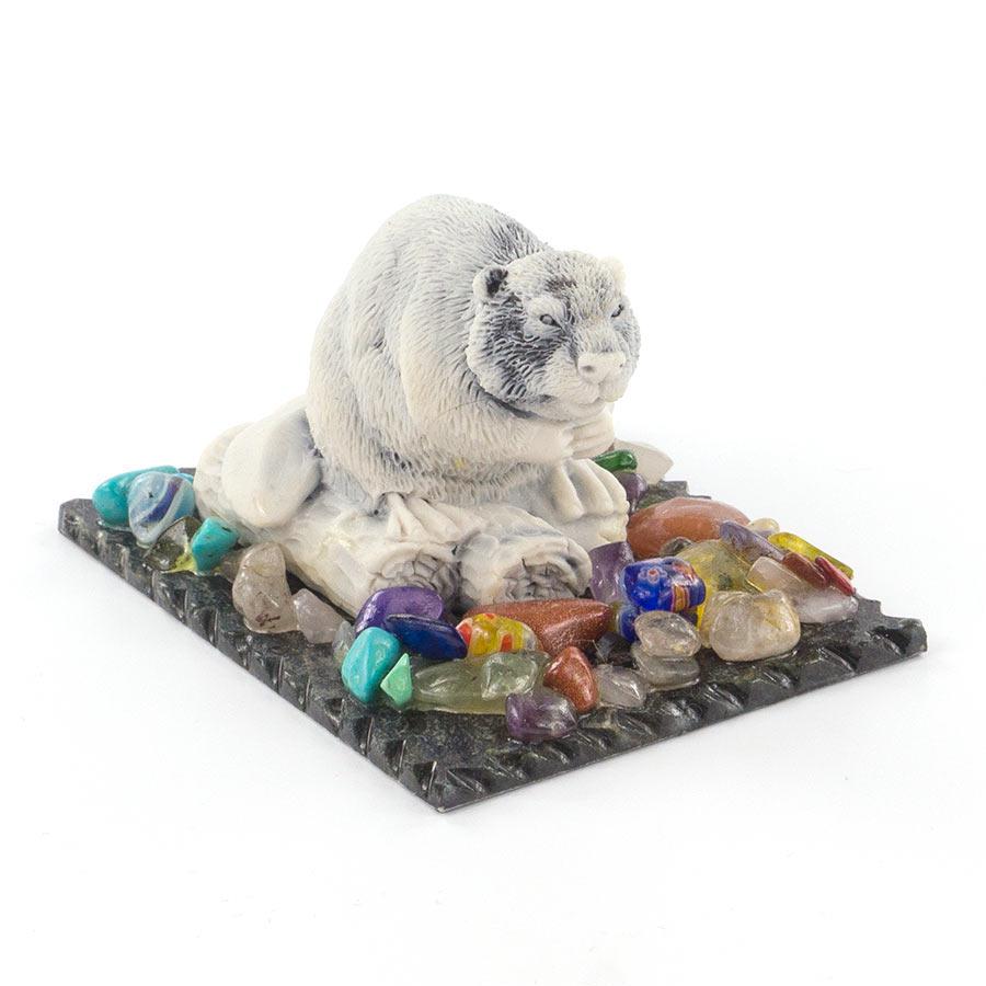 Сувенир "бобер" змеевик мрамолит самоцветы 90х65х50 мм 155 гр.