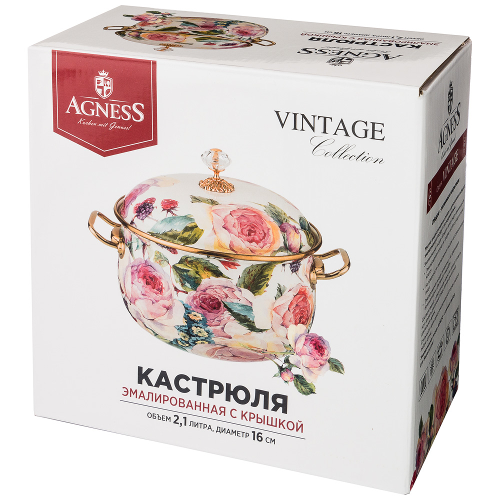 Кастрюля эмалированная Agness с крышкой, 2,1л, диа.16см
