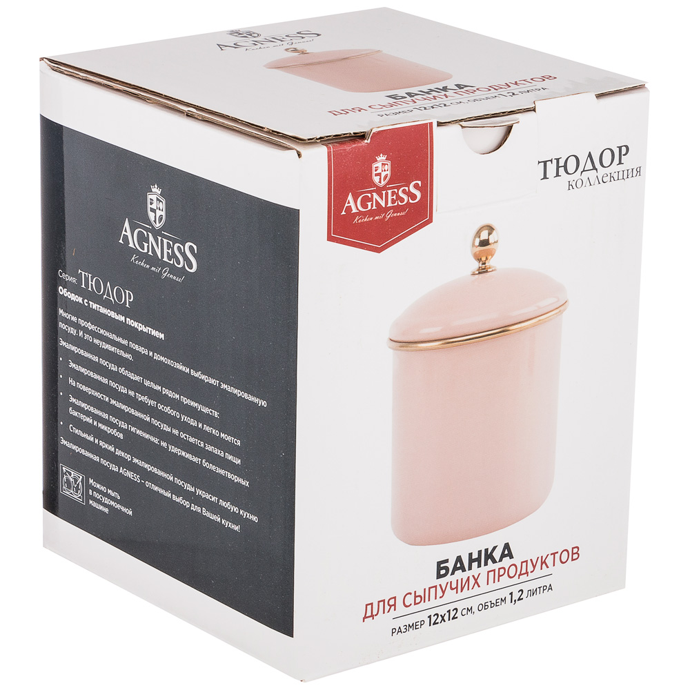 Банка для сыпучих продуктов Agness, эмалированная 12 х 12см / 1,2л
