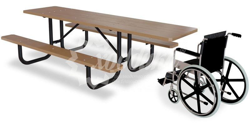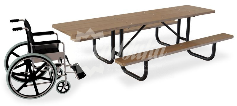 Комплект мебели «пикник2» стандарт плюс. Подробные характеристики Стол имеет защиту от раскачивания. Возможно исполнение стандарт плюс предусматривающее места для людей с ограниченными возможностями. Материалы: Опоры: Стальной прокат. Защита от коррозии. Покрыты порошковой полимерной краской. Возможность выбора цвета по каталогу RAL. Стандартный цвет (по умолчанию) - черный. Столешница: Брус, ангарская сосна. Возможность выбора цвета из палитры. Фурнитура: Оцинкованная. Возможность выбора цвета фурнитуры по каталогу RAL. Стандартный цвет (по умолчанию) - серебристый. Возможность использования потайной/скрытой фурнитуры. Технические характеристики: Габаритные размеры: Высота: 80 см Ширина: 180 см Длина: 180 см Вес: от 50 кг Детальные размеры: Ширина столешницы: 700 мм Длина: 1800 мм О модели Комплект мебели Пикник2 - это волшебное сочетание комфорта, стоимости и надежности. Этот комплект не просто дополнит, а украсит территорию мангальной зоны, будь то парк, сквер или загородное поместье. Комплект Пикник2 может поставляться с увеличенной столешницей и большим числом посадочных мест, что безусловно превратит ваше место в незабываемый отдых. Варианты цвета на выбор: , тик, махагон, палисандр,
