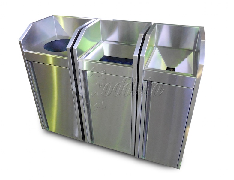 Урна для раздельного сбора мусора па047 100 л.. Подробные характеристики Материалы: Каркас: Шлифованная, перфорированная нержавеющая сталь. Технические характеристики: Объём: 100 л Высота: 1110 мм Ширина: 500 мм Глубина: 500 мм Вес: от кг