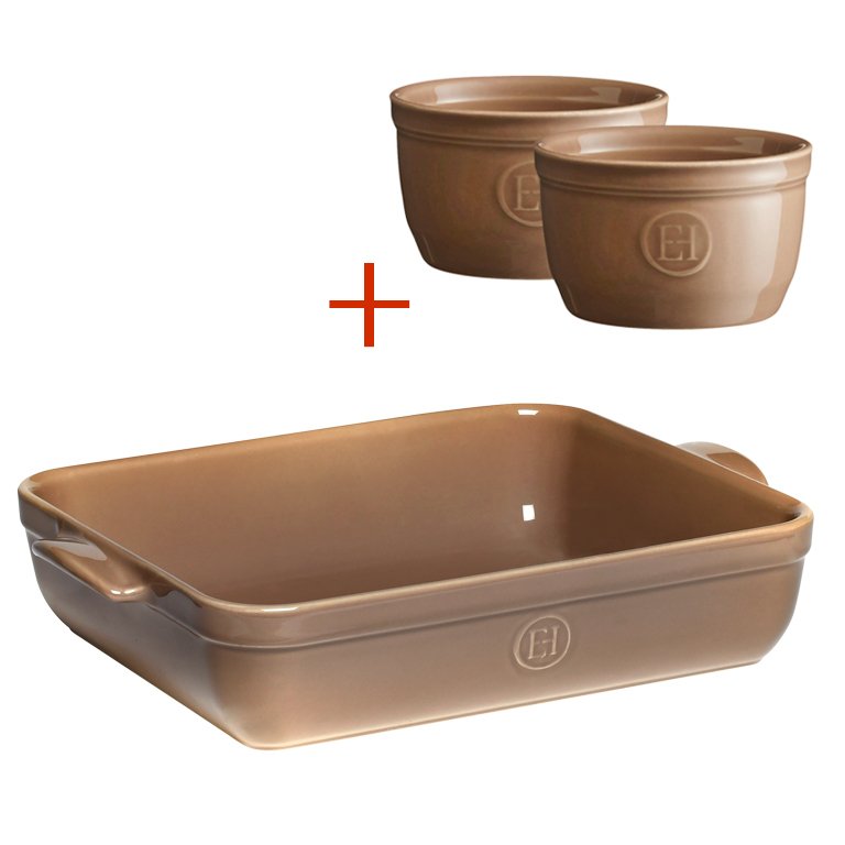 Промонабор: Emile Henry форма для лазаньи 35x25,5 Cm (мускат) + рамекин 9