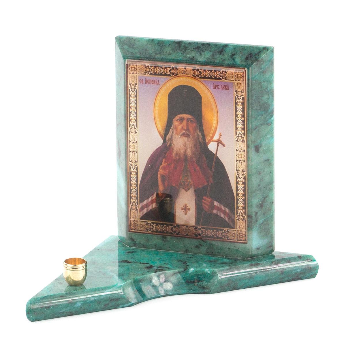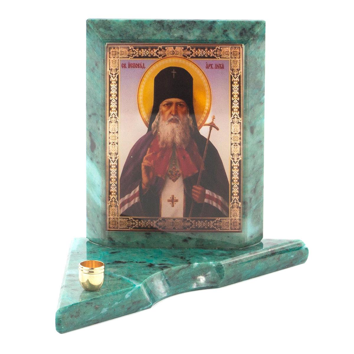 Икона с подсвечником святой лука малая змеевик 95х95х100 мм 350 гр.