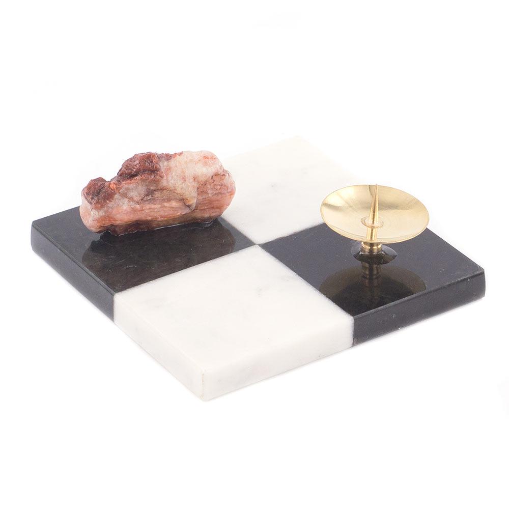 Подсвечник шахматный мрамор змеевик 100х100х40 мм 300 гр.