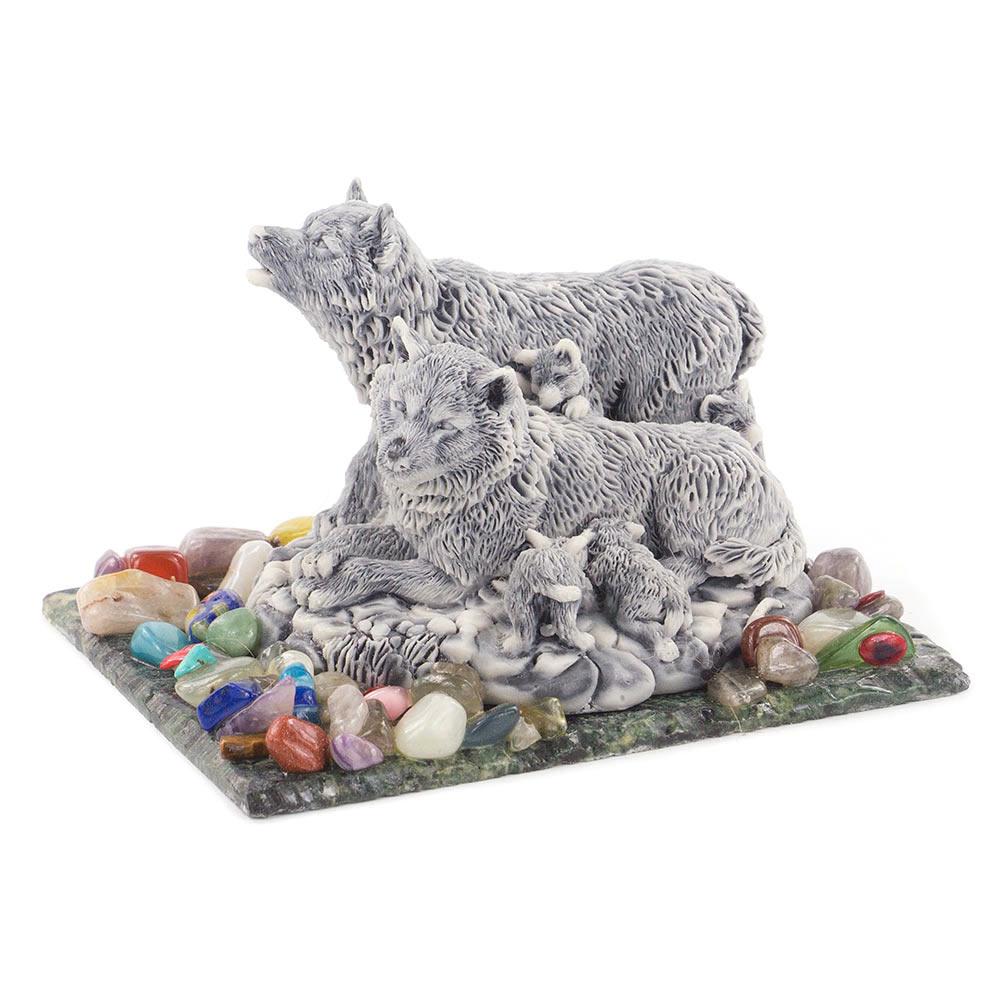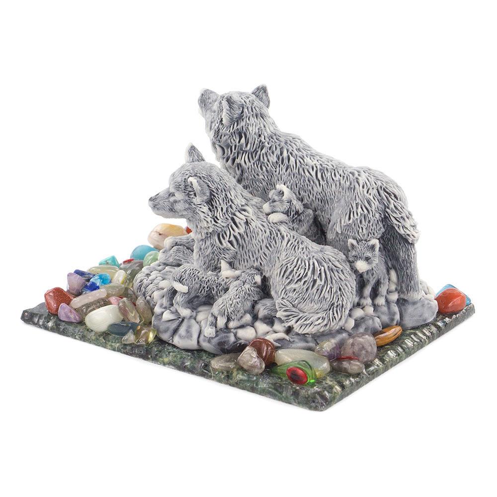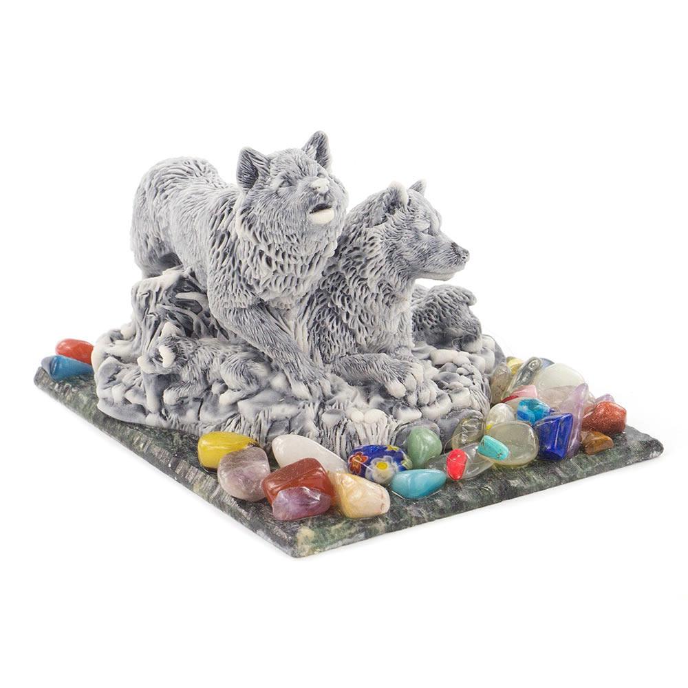 Сувенир "семейство волков" змеевик мрамолит самоцветы 110х80х65