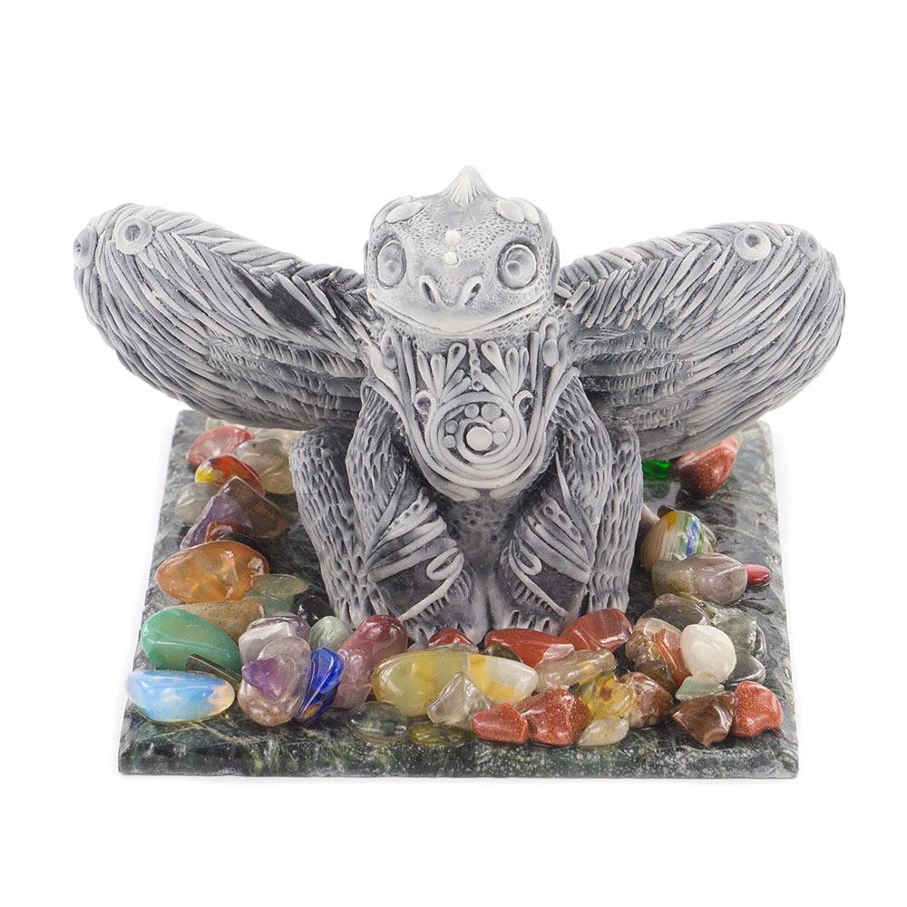 Сувенир "мультяшный дракон" змеевик мрамолит самоцветы 105х95х65