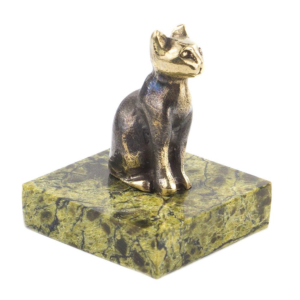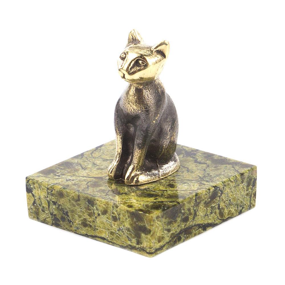 Статуэтка "кошка малая" бронза змеевик 35х35х45 мм 50 гр.
