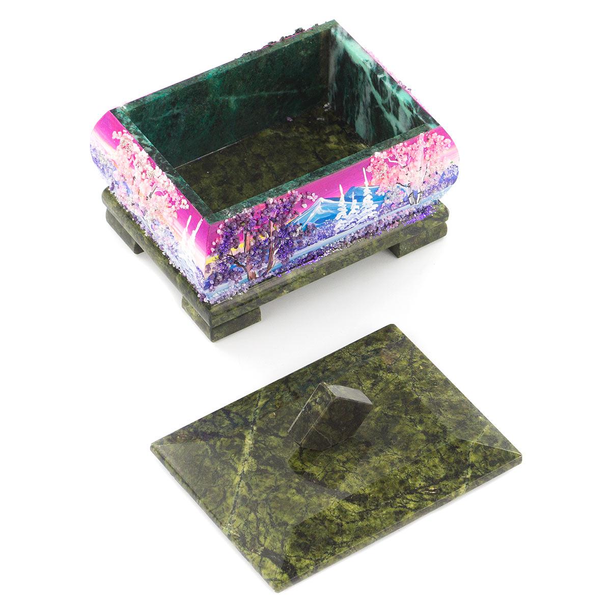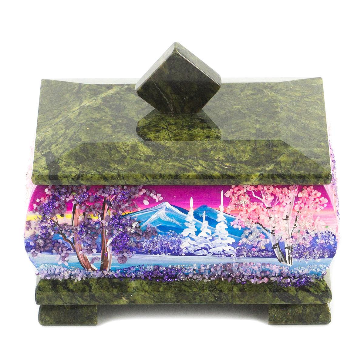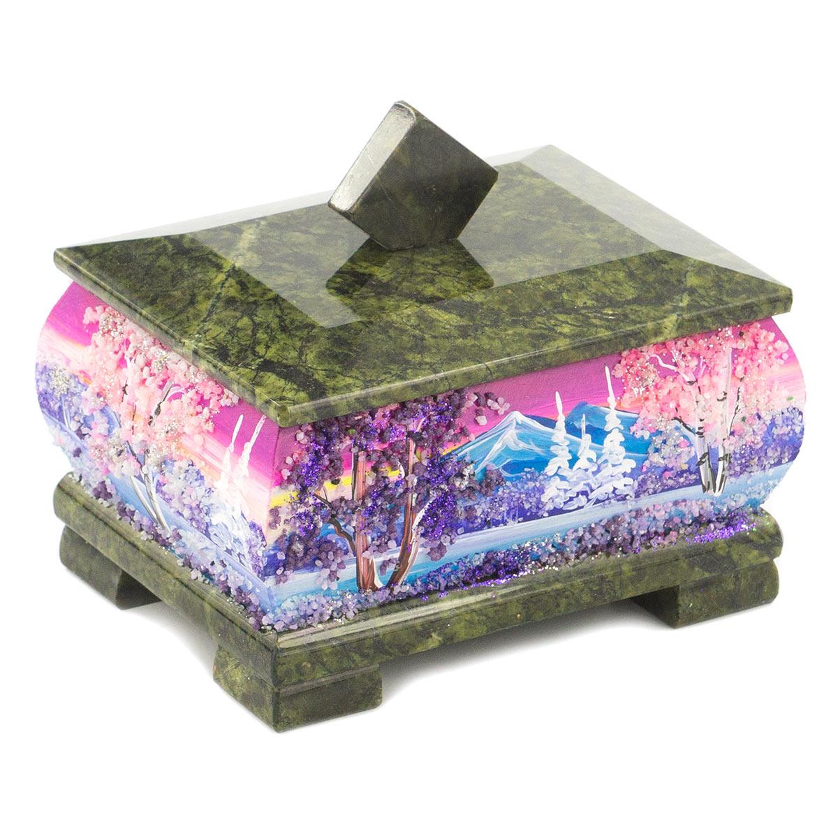 Шкатулка змеевик рисунок зима в ассортименте 120х95х105 мм 1000 гр.