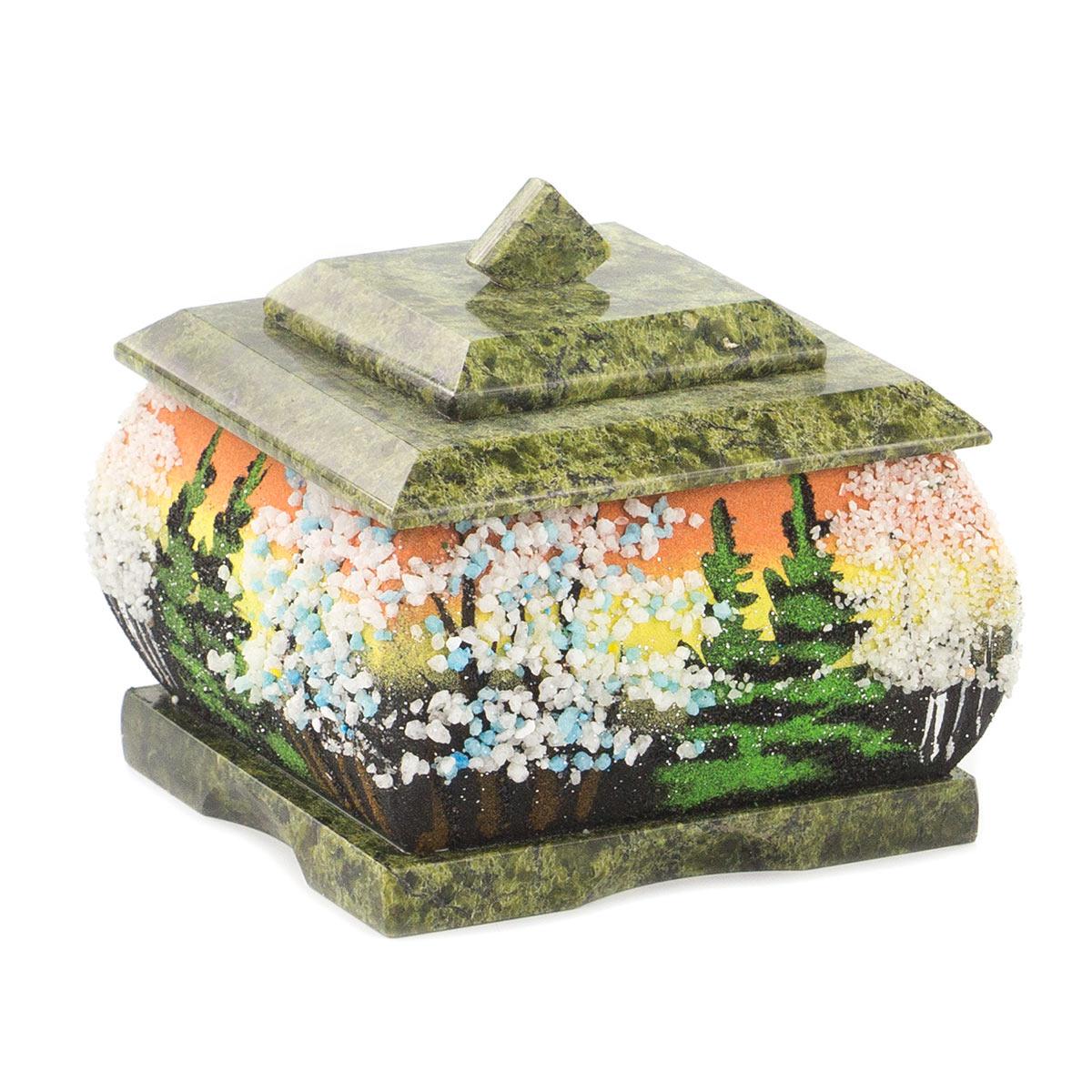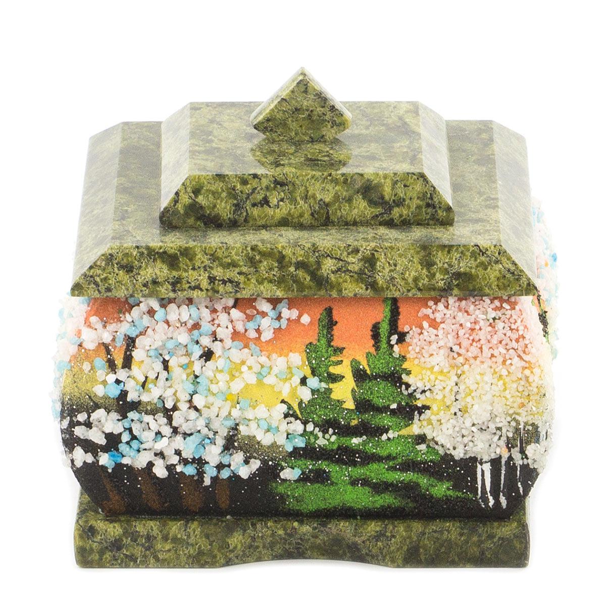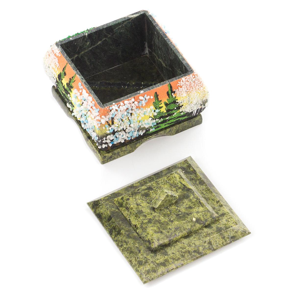 Шкатулка змеевик рисунок зима в ассортименте 100х100х90 мм 800 гр.