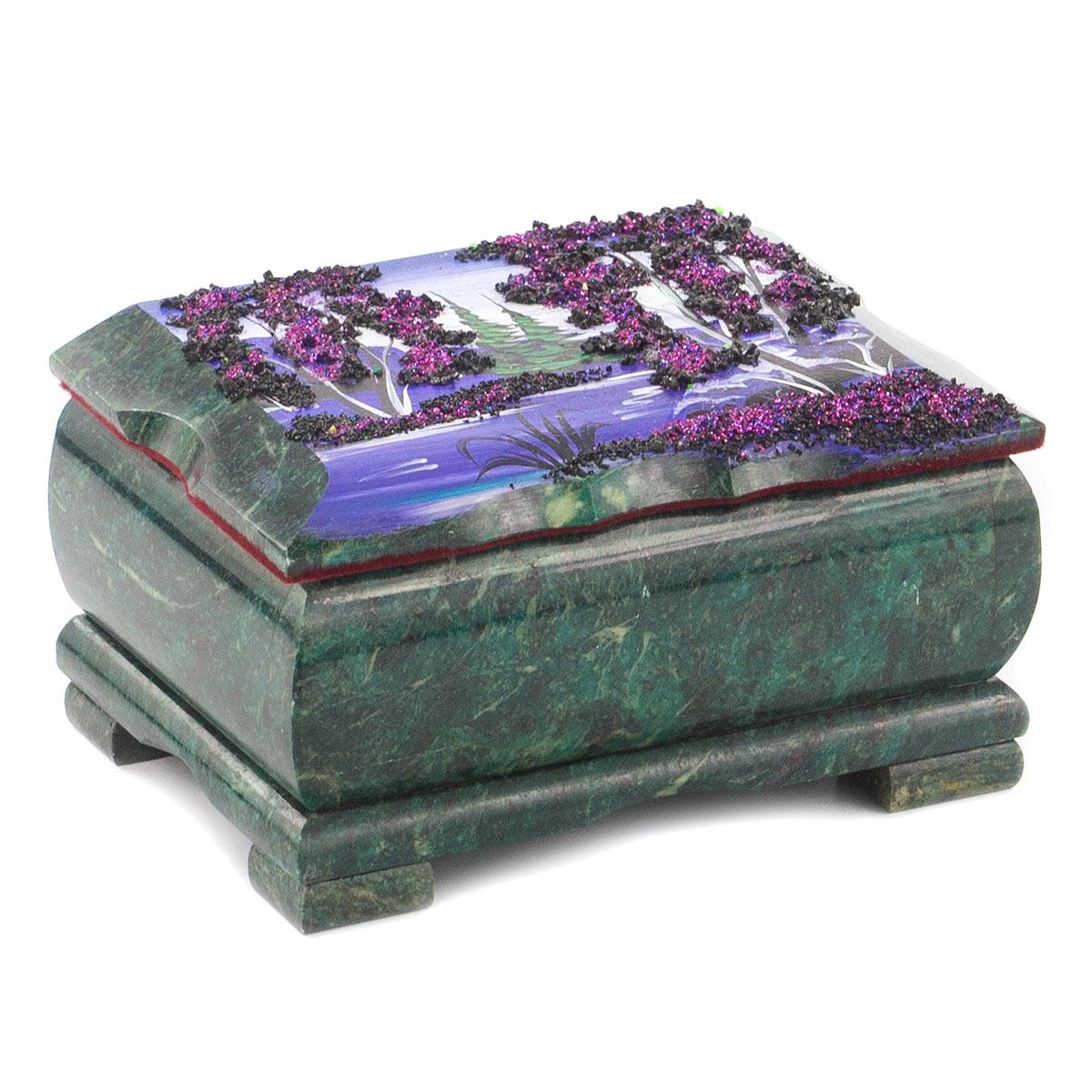 Шкатулка с расписной крышкой рассвет в ассортименте 135х100х80 мм 1250 гр.