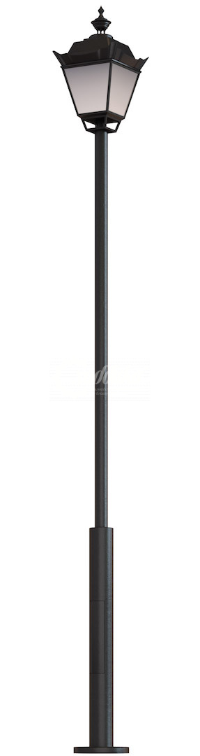 Стальной фонарный столб ретро 2,9 м. Подробные характеристики Материалы: Тумба, стойка и кронштейн: Сталь. Покрыты порошковой полимерной краской. Возможность выбора цвета по каталогу RAL. Соединительные и декоративные элементы: Сталь. Светильник: Ретро. Технические характеристики: Источник света: Патрон E-27 под лампу накаливания до 150 Вт, либо энергосберегающую лампу. Возможна комплектация ПРА под Nat70, Nat100, ДРЛ80, ДРЛ125 и источником света. Возможно комплектование светодиодными модулями. Высота: от 2,9 до 3,5 м Вес: от 31 кг Монтаж столба на объекте производится путем бетонирования стойки или закладной детали, с последующим креплением столба болтовым соединением. Фонарный столб имеет ревизионное окошко для обслуживания электрической цепи. Закладной фундамент заказывается отдельно и в цену не входит. О модели Используется в качестве функционального и декоративного освещения улиц, парков, проспектов, скверов, дворов и других общественных мест. Подходит как для дачи и сада, так и для мест муниципального назначения. Монтаж столба на объекте производится путем бетонирования стойки или закладной детали, с последующим креплением столба болтовым соединением.