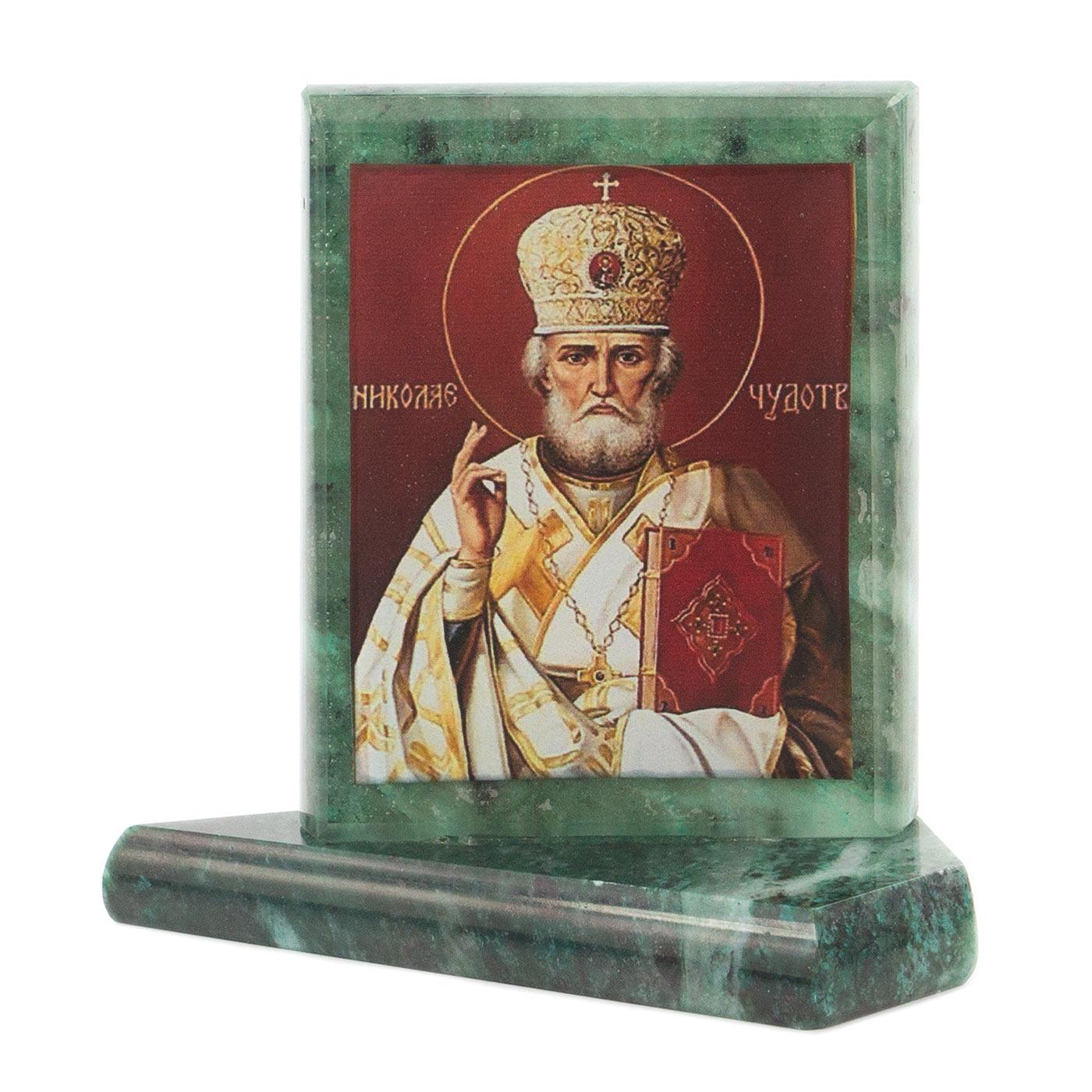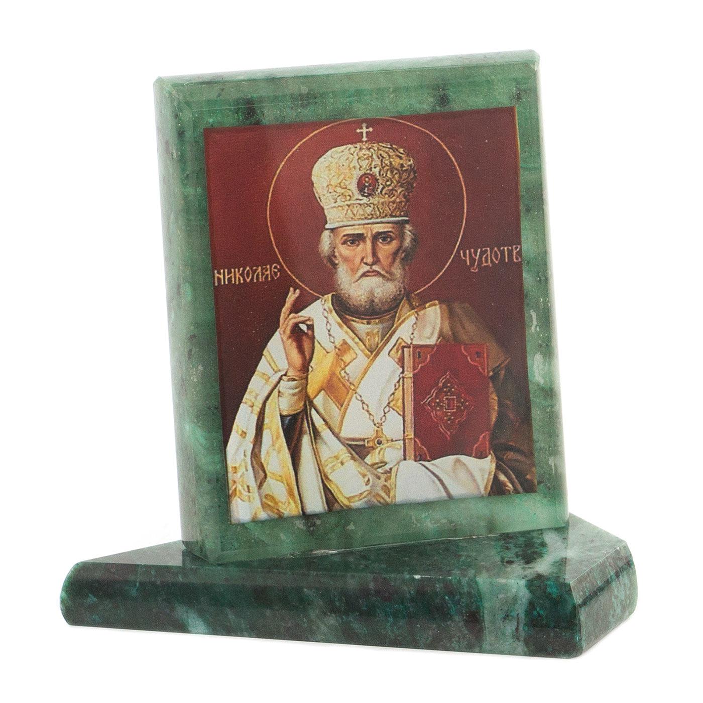 Икона настольная николай чудотворец малая змеевик 75х65х80 мм 200 гр.