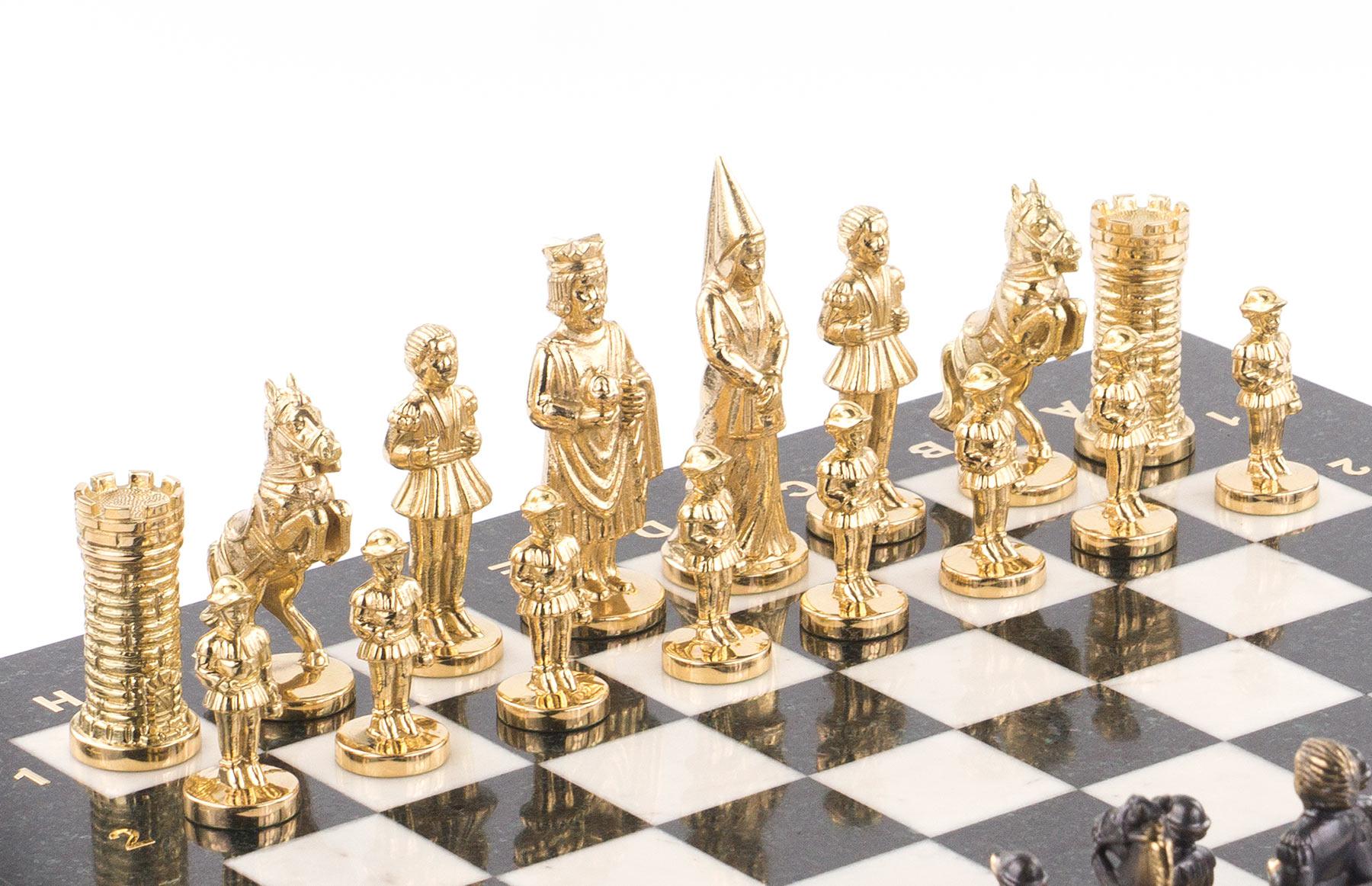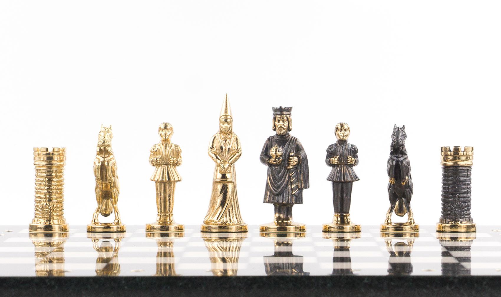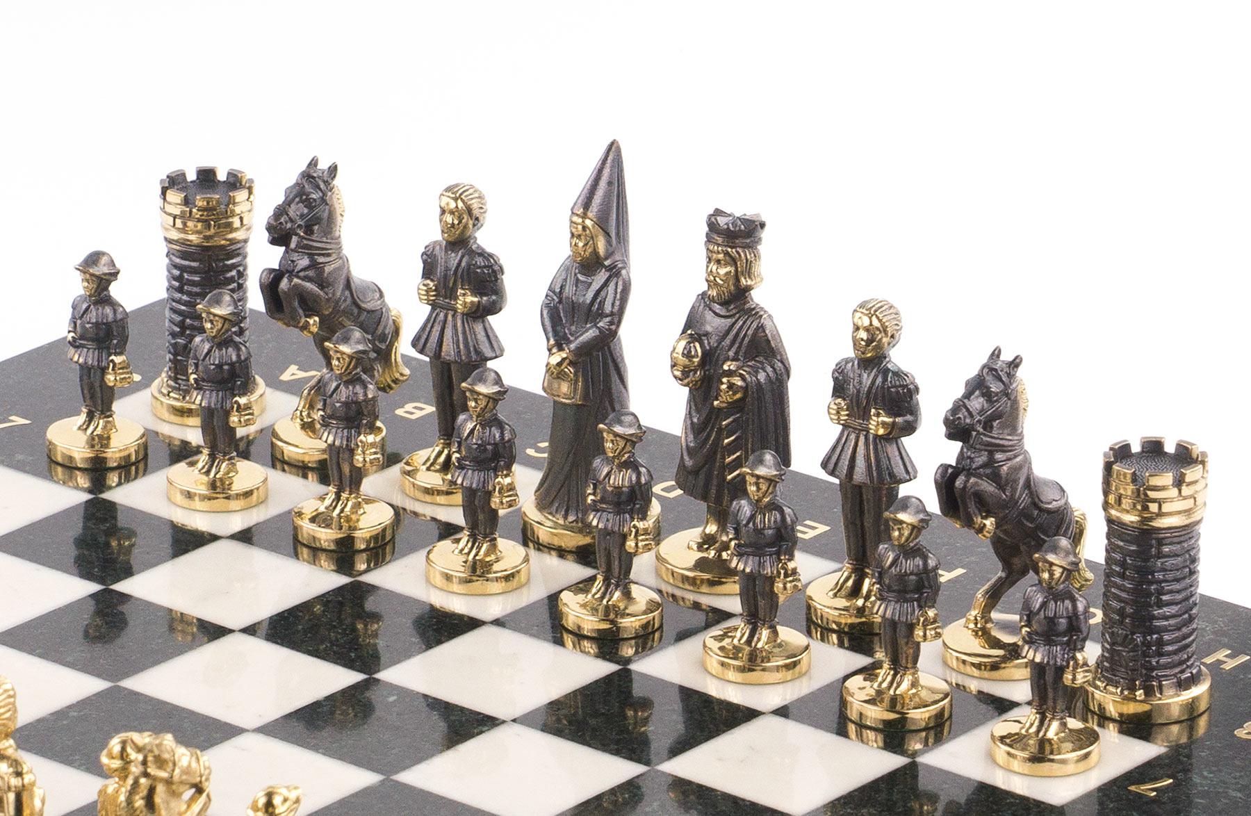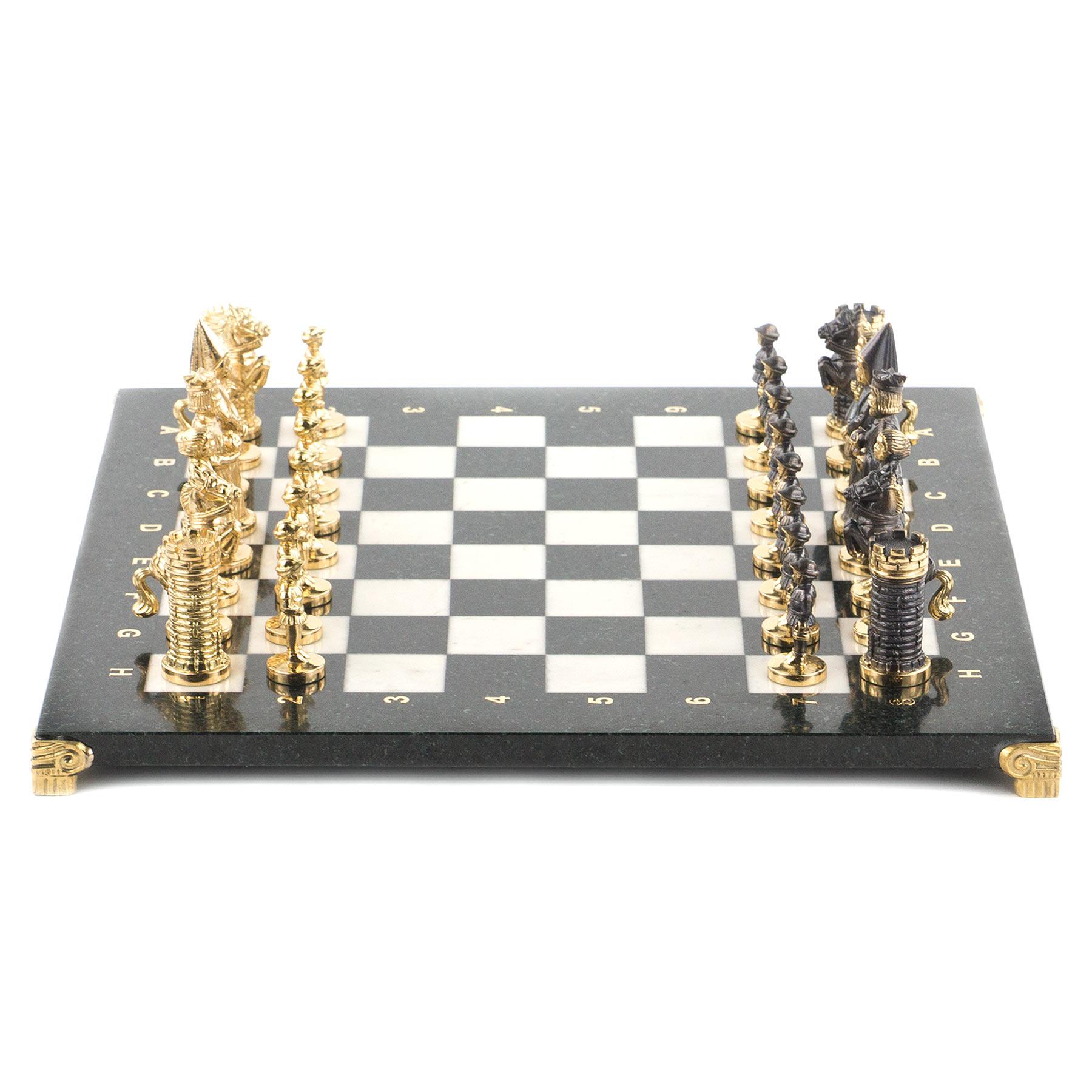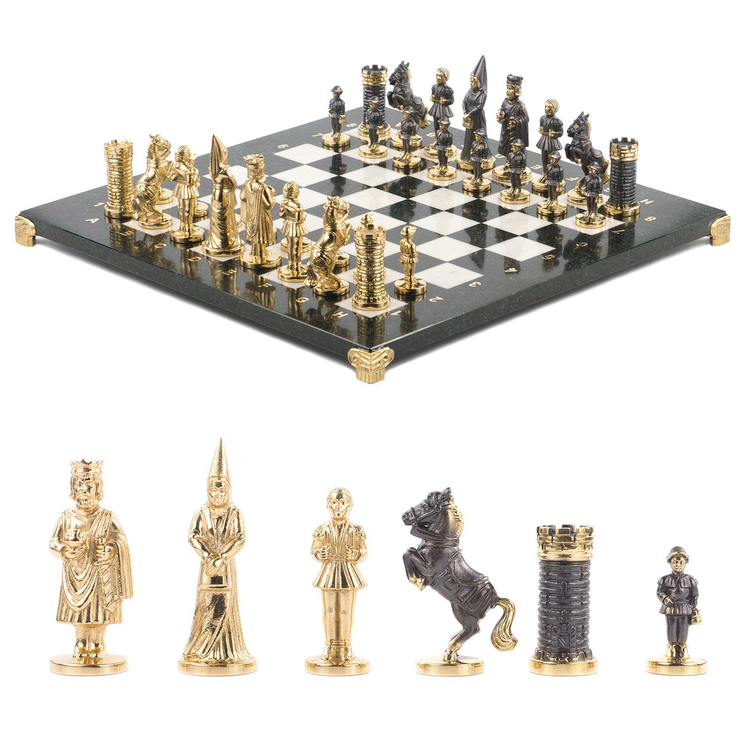 Шахматы камелот бронза мрамор змеевик 400х400 мм. Вес 12000 г Размер доска 40х40х2,5 см, клетка 4х4 см, высота фигур: пешка 5,1 см, король 9,5 см Материал доска из змеевика и мрамора, фигуры из бронзы  развернуть описание ▼