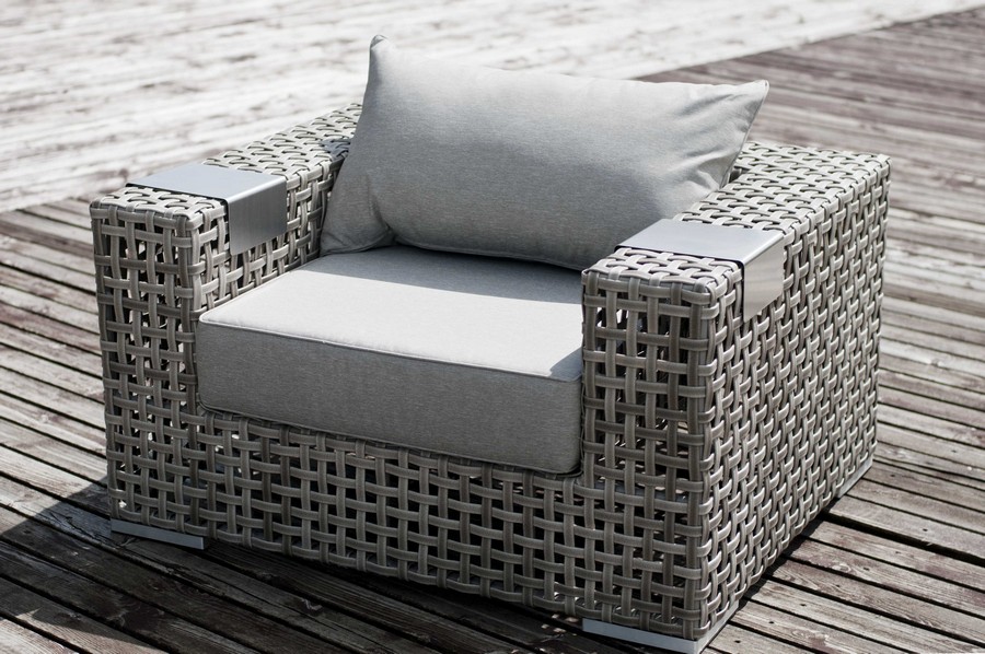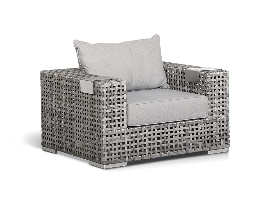 Тито кресло серое. Тито, кресло из искуственного ротанга в комплекте с подушками, размер 1120х920х610, ручное плетение, цвет серый, алюминиевый каркас. Габариты 1120x920x610мм Цвет плетения серый Цвет подушки серый Материал каркаса алюминий Материал плетения искусственный ротанг Материал подушки полиэстер 100% плотностью 230гр/м2 с влагоотталкивающей пропиткой Габариты упаковки 1140х940х630 Вес(Брутто) 25 Вес 25кг