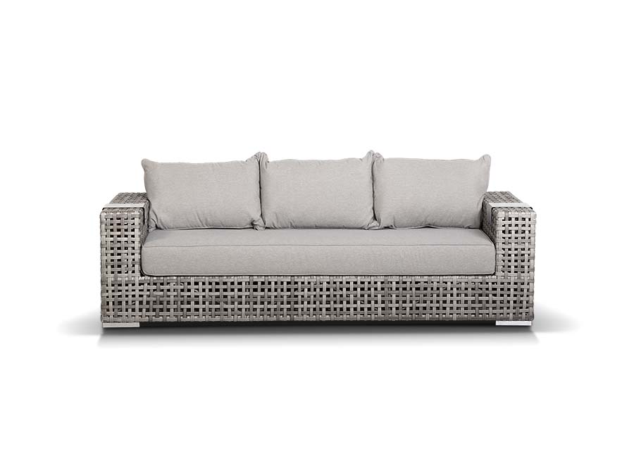 Тито диван трехместный серый. Тито, диван трехместный из искуственного ротанга, в комплекте с подушками, размеры 2280х920х610, ручное плоское плетение, цвет серый, алюминиевый каркас. Габариты 2280x920x610мм Цвет плетения серый Цвет подушки серый Материал каркаса алюминий Материал плетения искусственный ротанг Материал подушки полиэстер 100% плотностью 230гр/м2 с влагоотталкивающей пропиткой Габариты упаковки 2300х940х630 Вес(Брутто) 45 Вес 45кг