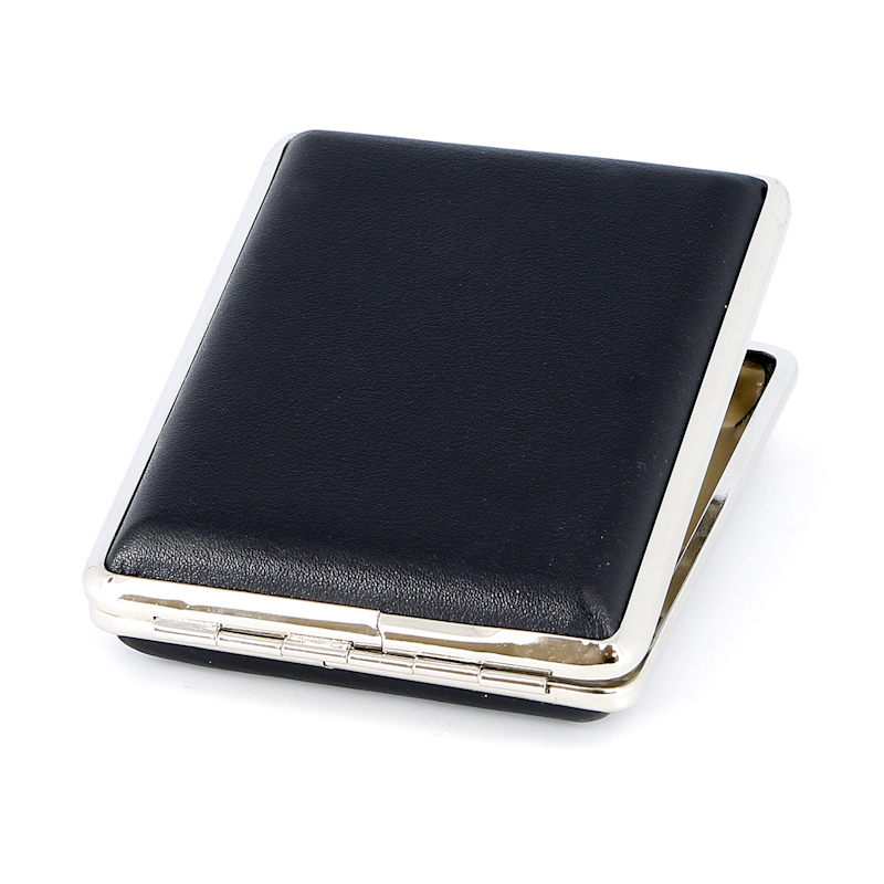 Портсигар S.Quire, сталь+искусственная кожа, черный цвет, гладкий, 96*93*1